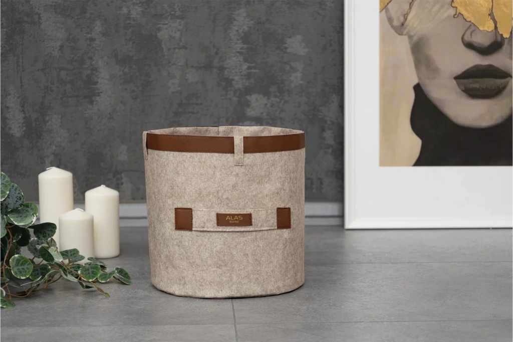 Deri Şeritli Yuvarlak Çok Amaçlı Düzenleyici Organizer Kutu Keçe Sepet (mini) 03822