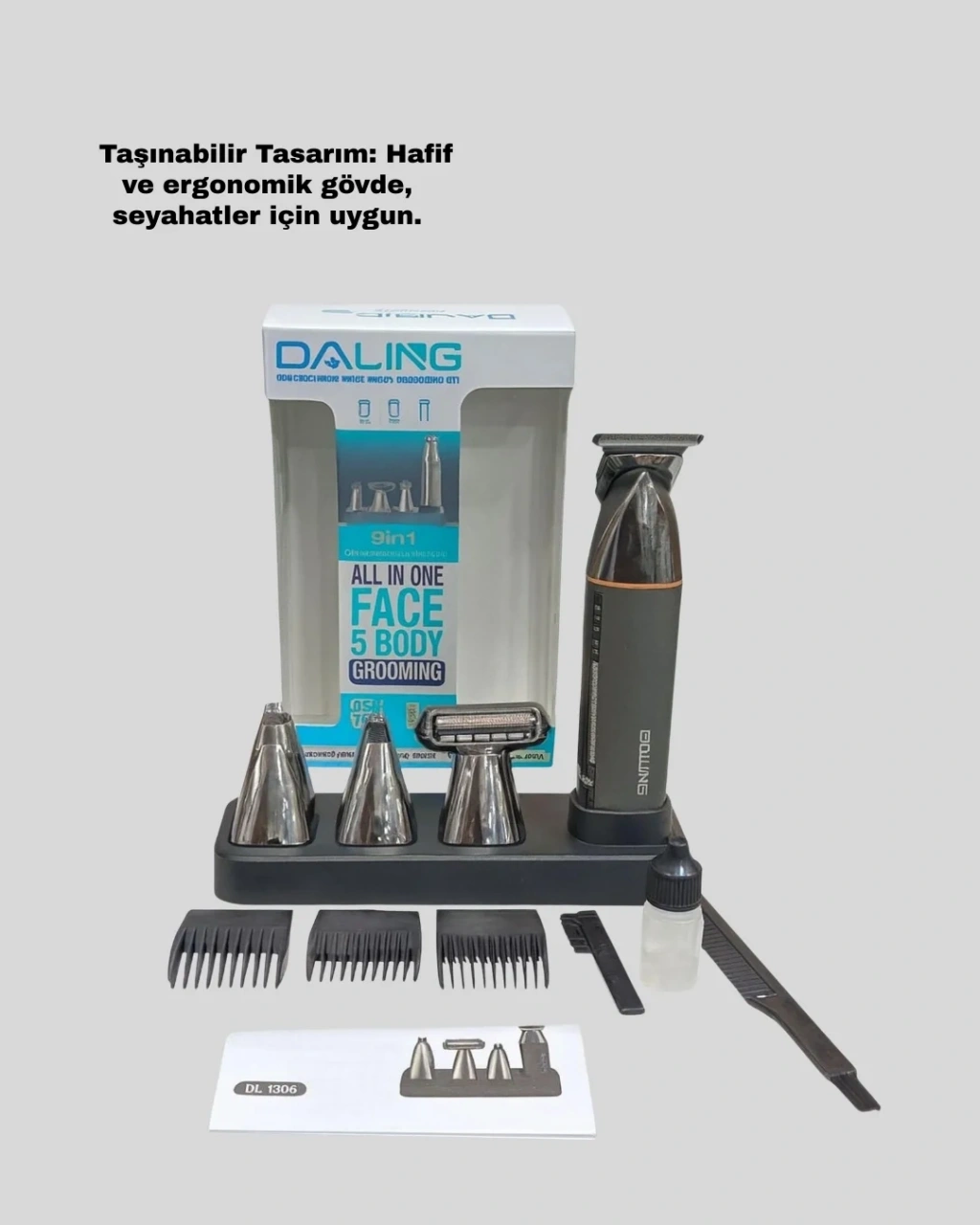 9’u 1 arada çoklu bakım seti, erkek kişisel bakımını daha kolay, hızlı ve profesyonel hale getirmek için tasarlanmış kapsamlı bir çözümdür. Paslanmaz çelik bıçakları sayesinde her kullanımda keskin ve net bir kesim performansı sunar. Güçlü motor yapısı, kalın saç ve sakal yapılarında bile zorlanmadan çalışır.Cihazın 600 mAh lityum pili tam şarj olduğunda yaklaşık 90 dakika kesintisiz kullanım sağlar. USB şarj özelliği sayesinde ofiste, evde veya seyahatlerde rahatlıkla şarj edilebilir. LED ışığı şarj durumunu ve çalışma modunu gösterir.Set içerisindeki farklı başlıklar; saç kesimi, sakal düzenleme, detay kesimi, ense tıraşı ve burun–kulak tüy temizliği gibi pek çok ihtiyacınıza yönelik tasarlanmıştır. Farklı uzunluklar için tercih edebileceğiniz taraklar da pakete dahildir.Başlıkların yıkanabilir olması hijyenik kullanım sunar. Seyahat çantasıyla tüm atları düzenli taşıyabilirsiniz. Hem günlük hem profesyonel kullanım için uygun, kaliteli bir erkek bakım setidir.