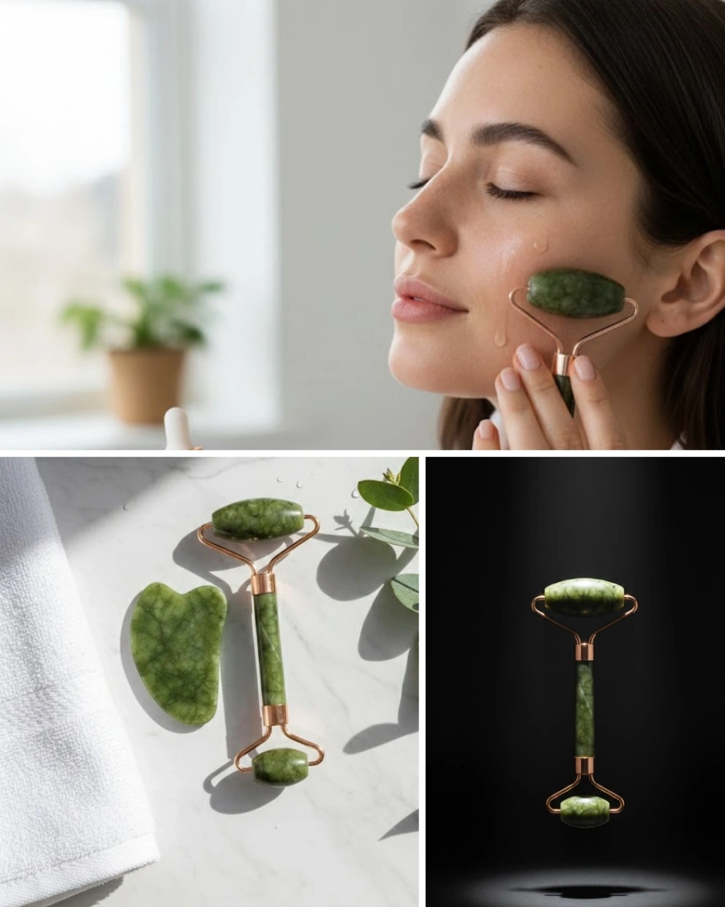 Doğal Yeşim Roller Ve Gua Sha Yüz Şekillendirme Seti