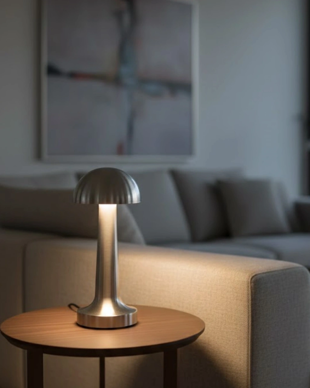 Dokunmatik Mantar Masa Lambası 3 Modlu Işık Şarjlı Kablosuz Led Krom Gövde