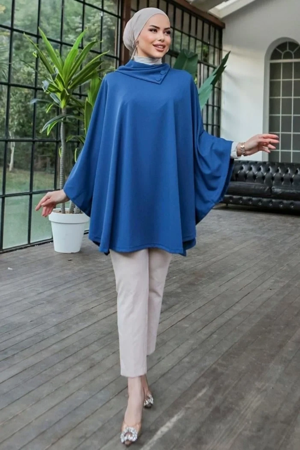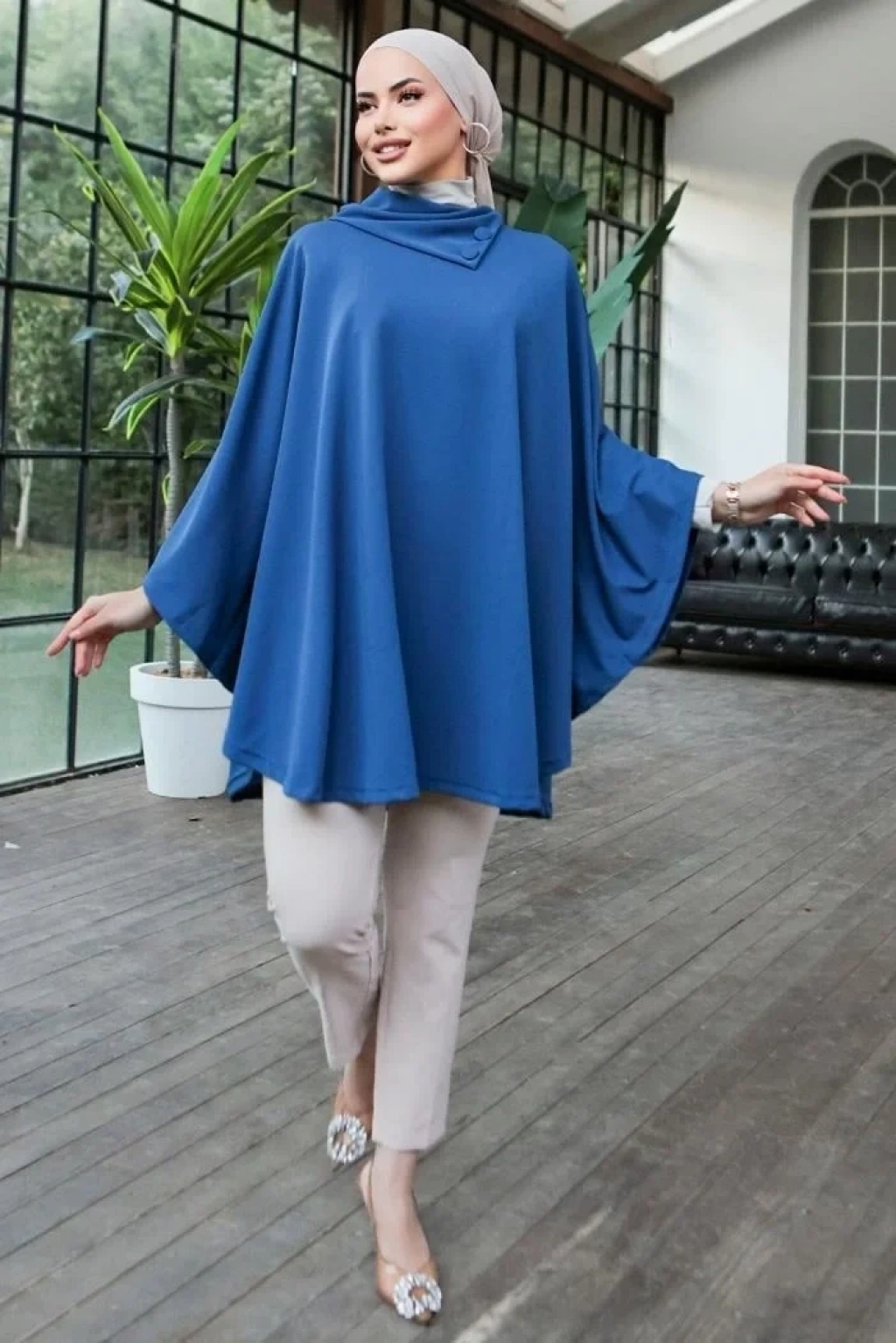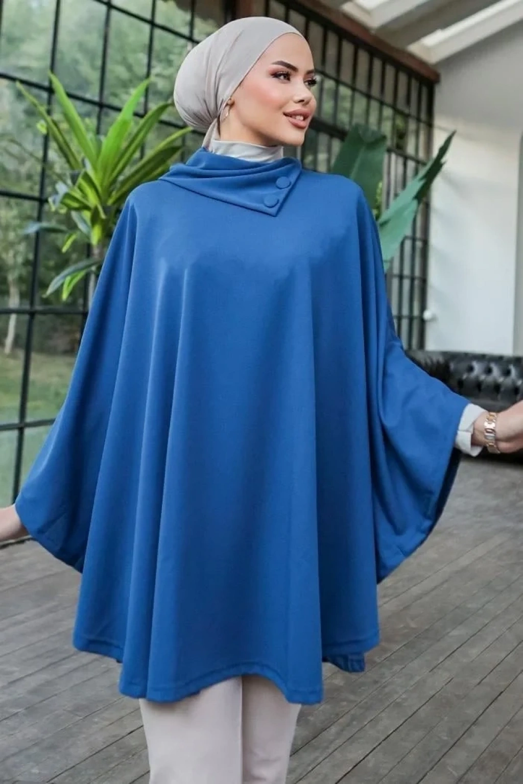 "Bir İnci: Zarafetin Simgesi Mavi Panço, Kadınların Gardırobuna Estetik Katıyor!