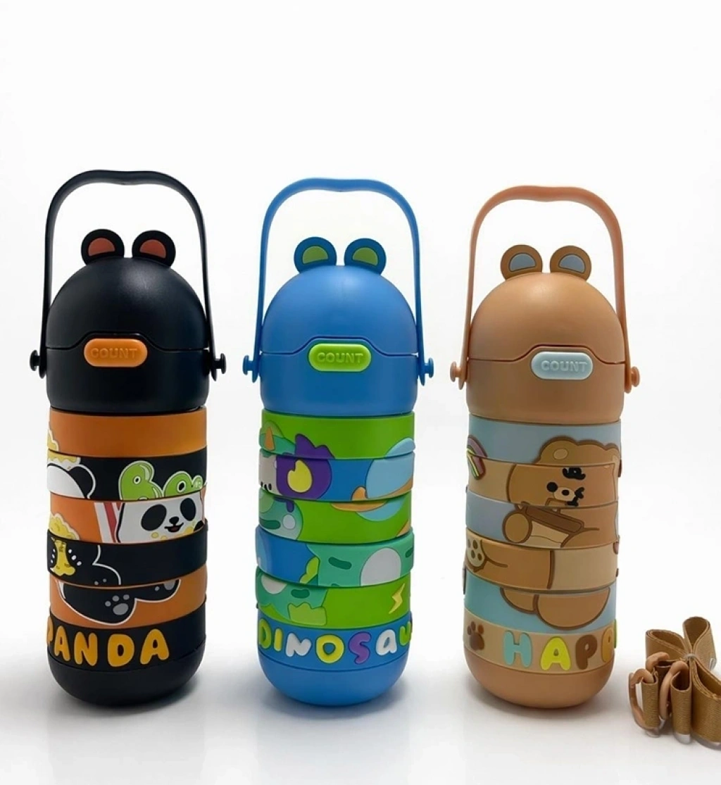 Eğitici Puzzele Yapboz Çocuk Termosu - Paslanmaz Çelik Pipetli Ve Askılı Matara Alk4653