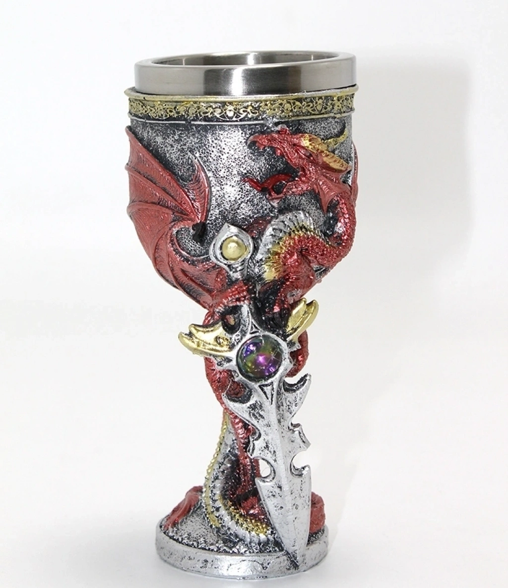 Ejderha Ve Kılıç Temalı 3d Kabartmalı Çelik Kadeh Bardak Alk4373