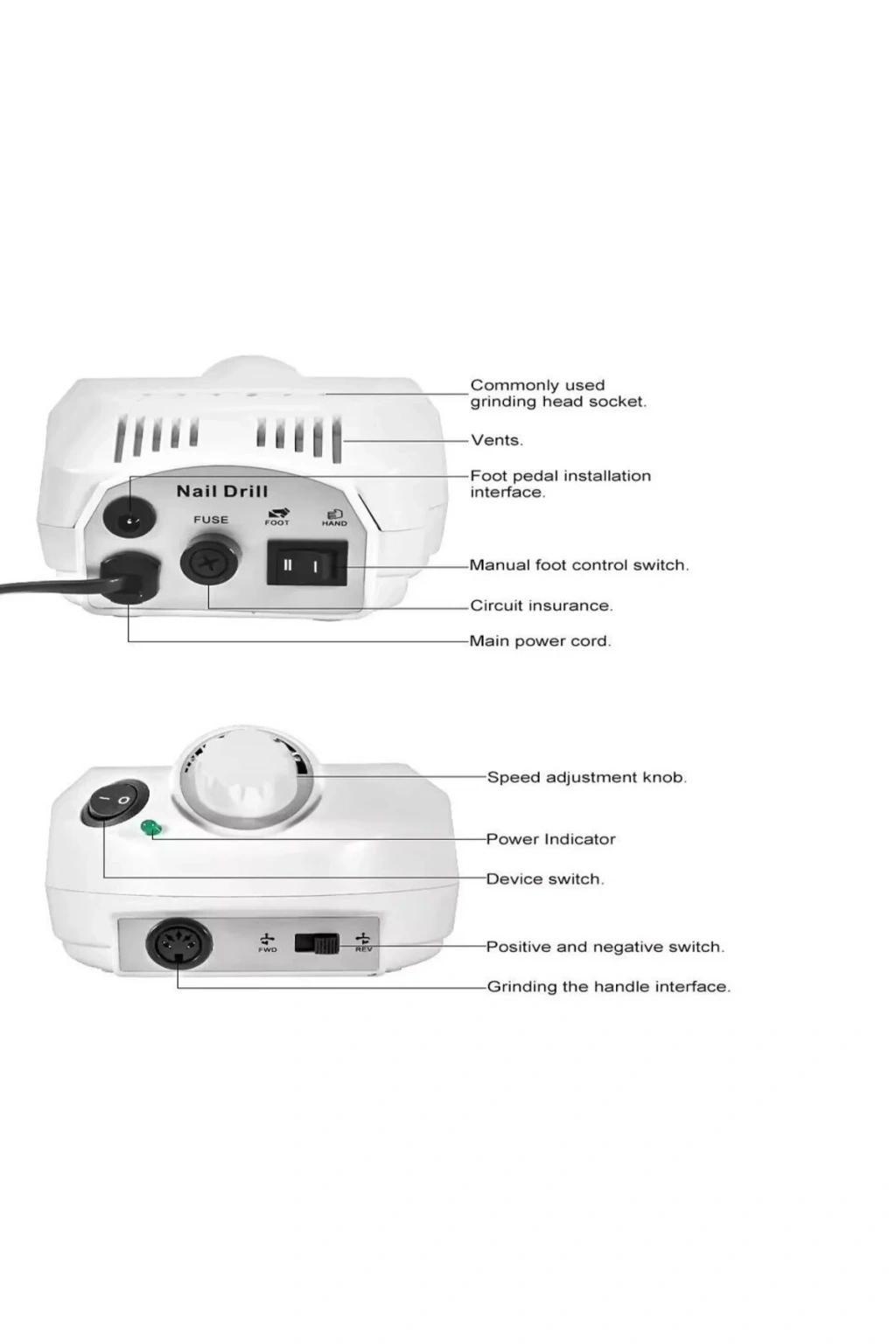35000 rpm Nail Cihazımız başta protez tırnak işleminde kullanıldığı gibi kuru manikür ve pedikür,ayak sağlığında kullanılabilir. Hız ayar bölümü sayesinde istediğimiz hassasiyette çalışabiliriz. Cihazımız hem sağ elini kullananlar hemde sol elini kullananlar için özel olarak tasarlanmıştır. Ayak pedalı desteği bulunmaktadır. Uçları değişmekle birlikte çalışacağınız bölgeye göre istediğiniz uç ile çalışmanızı sağlar. 220 v ile çalışır ve ekstra bir adaptör gerektirmez. Set içeriğinde 6 adet uç hediye gönderilmektedir. Ürünümüz orjinal kutusunda size gönderilmektedir. hızlı ısınma yapmaz üst kalite mekanizma ile üretilmiştir Epilons GÜVENCİSİ İLE