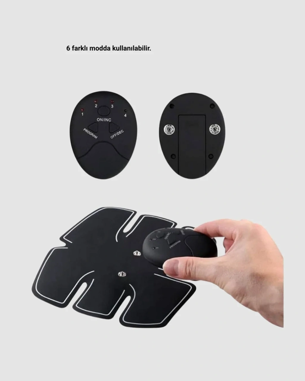 Bu EMS kas uyarıcı cihaz, göbek ve kol bölgesindeki kasları daha aktif hale getirmek için tasarlanmış yenilikçi bir elektronik vücut şekillendirme ürünüdür. Kaslara mikro elektriksel uyarılar göndererek kasılma hareketi oluşturan bu cihaz, düzenli kullanımla kasların daha sık çalışmasına yardımcı olur. Hem spor yapanlar hem de günlük yaşamında ek bir destek isteyen kişiler için uygundur.Ürün; 1 adet göbek pedi ve 2 adet kol pedi olmak üzere toplam üç pedden oluşur. Jel pedlerin cilde güçlü bir şekilde yapışması için uygulama yapılacak bölgenin temiz olması önerilir. Pedler vinil koruyucularından çıkarılarak cilde yapıştırılır ve ardından cihazdan tercih edilen mod seçilerek çalışma başlatılır. Her mod 12 dakikalık bir çalışma süresine sahiptir ve bu süre optimal kas uyarımı için idealdir.Cihazın 6 farklı modu, farklı yoğunluk seviyelerinde çalışma imkânı sunar. Kullanıcı, başlangıç seviyesinden yüksek yoğunluğa kadar istediği güçte ayarlama yapabilir. Özellikle göbek ve kol bölgesinde çalışmayı hedefleyen EMS teknolojisi, kası hem güçlendirme hem de sıkılaştırma aıyla kullanılabilir.Enerji tasarrufu sağlayan otomatik kapanma özelliği, cihaz kullanılmadığında kendini kapatarak güvenli kullanım sunar. Hafif ve ergonomik tasarımı sayesinde evde, iş yerinde veya seyahat sırasında kolayca taşınabilir. Esnek ped yapısı, vücut hatlarına uyum sağlayarak rahatsızlık hissini en aza indirir.Bu EMS vücut şekillendirici cihaz, yoğun yaşam temposuna rağmen spor rutini oluşturmak isteyen kişilere pratik çözüm sunar. Düzenli kullanımda kas aktivitesini artırmaya yardımcı olan cihaz, kolay uygulanabilir yapısıyla günlük bakım rutininin vazgeçilmez bir parçası haline gelir.