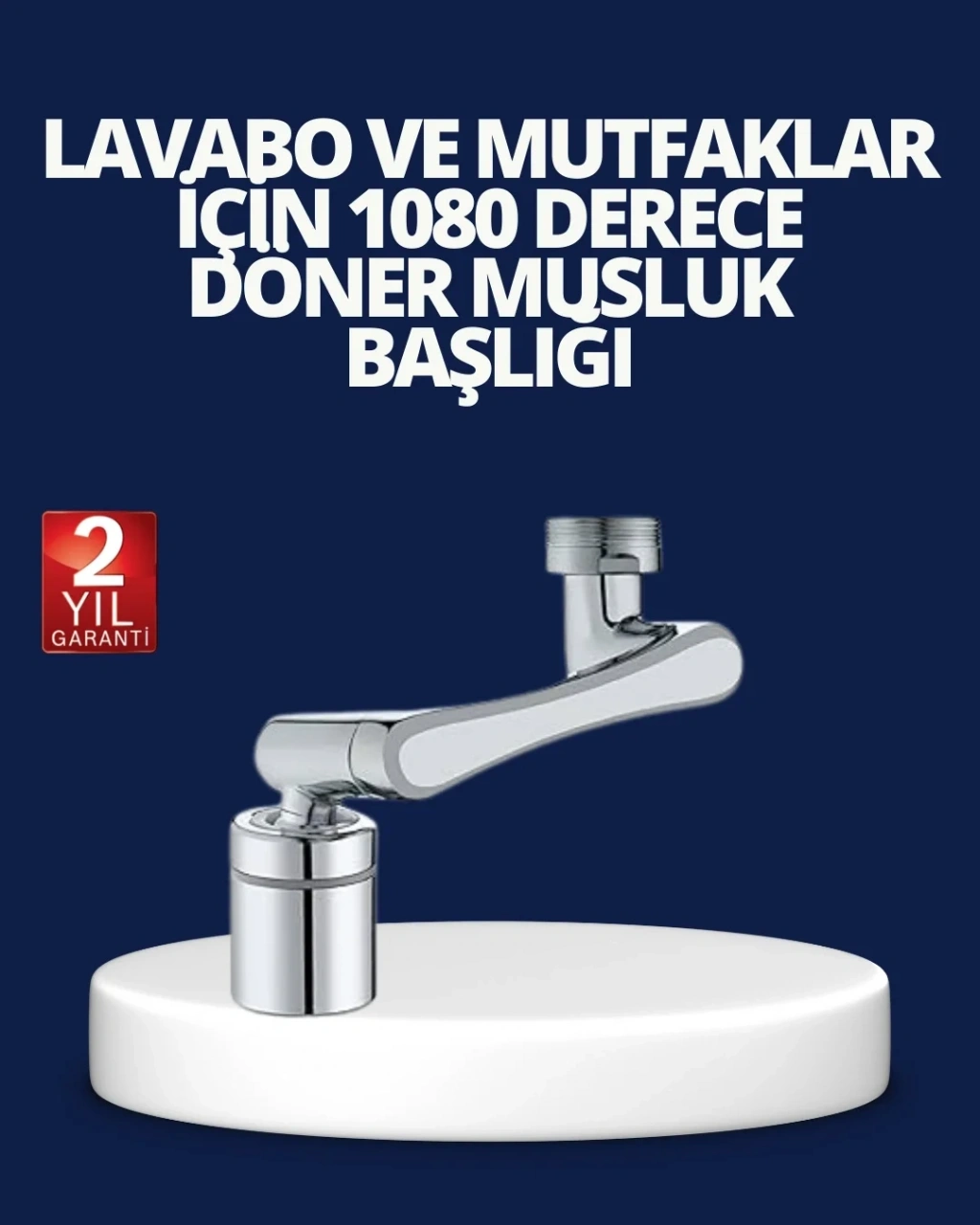 Bu esnek 1080° musluk başlığı, üç eklemli robotik tasarımıyla suyu dilediğiniz açıya yönlendirerek günlük işlemleri çok daha kolay hale getirir. Hareketli yapısı sayesinde klasik musluklara göre çok daha geniş bir kullanım alanı sunar. Lavabonun ulaşılması zor bölgelerine erişmek artık zahmetsizdir.Başlık, iki işlevsel su modu içerir: Köpük Akışı, yumuşak ve geniş bir akış sunarak hassas kullanım gerektiren işlemler için idealdir. Güçlü Sprey Akışı ise yüksek basınçlı temizleme gücüyle kirleri ve yağ kalıntılarını rahatlıkla temizler. Günlük kullanım sırasında ihtiyaç duyduğunuz moda tek hareketle geçebilirsiniz.Su tasarrufu destekleyen iç yapısı, gereksiz harcamayı azaltır ve akışı optimize eder. Böylece temizlik performansından ödün vermeden daha verimli su kullanımı sağlar.Ürün, sebze–meyve durulama, tencere-bardak temizliği, lavabo köşelerine erişim, yüz yıkama ve el temizliği gibi pek çok işlemde üstün konfor sunar. Çocuklu aileler, yaşlı kullanıcılar ve yoğun mutfak trafiği olan evler için oldukça avantajlıdır.Takması son derece kolaydır. Standart musluklarla uyumludur ve adaptörleri sayesinde farklı sistemlere de dakikalar içinde bağlanabilir.Es ve modern görünümüyle hem mutfak hem banyo lavabolarına şıklık ve fonksiyonellik kazandırır.