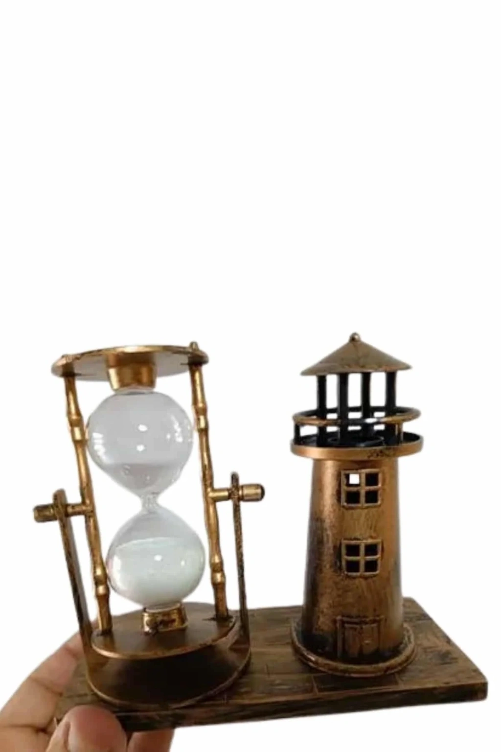 Deniz Feneri Tasarımlı Dekoratif Kum Saati – Şık ve Anlamlı Bir AksesuarZamanın akışını es bir şekilde temsil eden Deniz Feneri Tasarımlı Dekoratif Kum Saati, modern ve zarif tasarımıyla ev ve ofis dekorasyonuna benzersiz bir hava katıyor. Deniz fenerinin güven veren duruşundan ilham alınarak tasarlanmış bu kum saati, hem fonksiyonel hem de dekoratif bir aksesuar olarak dikkat çekiyor. Şık detayları ve kaliteli işçiliği ile zamansız bir dekorasyon öğesi olan bu ürün, bulunduğu ortama sofistike ve huzurlu bir ambiyans kazandırıyor. Masanızın veya kitaplığınızın üzerinde sergilendiğinde, iç açıcı bir görsellik sunarak mekâna sıcak bir atmosfer katıyor.