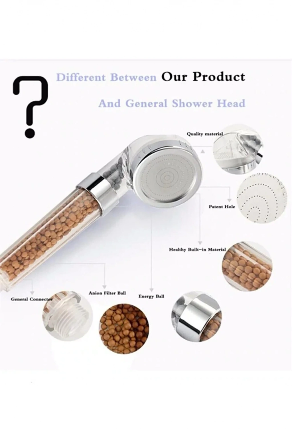 Filtreli Ve Su Tasarruflu Arıtmalı Duş Başlığı Seti Boncuklu Başlık Hortum Ve Mafsal Set