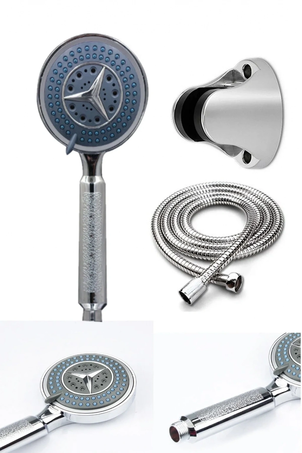 4 Kademeli Mavi Duş Seti El Duşu Başlığı Spiral Hortum Ve Duvar Askısı