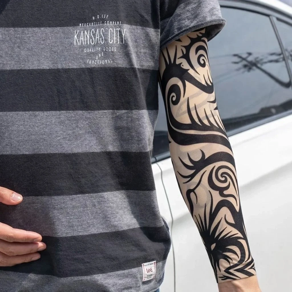 Dövme yaptırmadan tarzınızı ortaya çıkarın Model 15, kol ve bacak için tasarlanmış, yüksek kaliteli likralı kumaştan üretilmiş 3D baskılı geçici dövme çorap setidir. Set, 2 çoraptan oluşur, sağ ve sol kol veya bacak için uygundur.