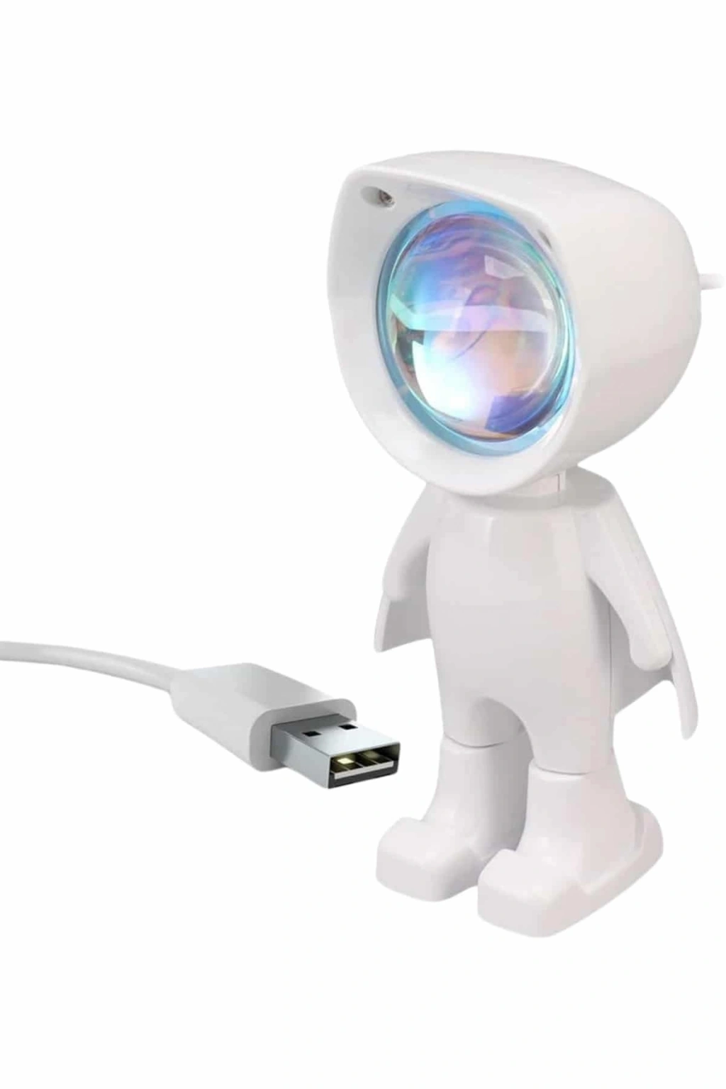 Bu sevimli astronot temalı gün batımı projektör lambası, hem dekoratif hem de fonksiyonel bir aydınlatma çözümü sunar. Gündelik kullanımda modern ve eğlenceli tasarımıyla bulunduğu ortama es bir hava katarken, aktif kullanıldığında ise yumuşak ve sıcak tonlardaki gün batımı efektli ışığıyla rahatlatıcı bir atmosfer oluşturur. USB ile şarj edilebilen bu ürün, taşınabilir yapısı sayesinde ev dışında da kolaylıkla kullanılabilir.5 Watt gücündeki LED ışık kaynağı, enerji verimliliğini yüksek seviyede tutarken uzun süreli kullanım olanağı sunar. Lamba kafasının 360 derece yatay ve 60 derece dikey dönebilen yapısı, ışığın yönünü dilediğiniz gibi ayarlayabilmenizi sağlar. Bu sayede ışığı bir duvara, tavana veya direkt olarak belirli bir alana yönlendirmek oldukça kolaydır.Dokunmatik kontrol paneli, kullanım deneyimini sade ve pratik hale getirir. Tek bir dokunuşla lambayı açıp kapatabilir, parlaklık seviyesini ihtiyacınıza göre ayarlayabilirsiniz. Işığın tonu ise özellikle gece saatlerinde göz yormadan huzur verici bir ortam yaratmak üzere tasarlanmıştır.Kompakt boyutları ve kablosuz kullanımı, bu lambayı yatak odasından oturma odasına, seyahatlerden açık hava etkinliklerine kadar her ortamda kullanışlı kılar. Kutu içerisinden çıkan USB kablosu ile şarj edilebilen cihaz, tam dolum sonrası 3-4 saat kesintisiz aydınlatma sunar.Gün batımı efektli ışık, özellikle fotoğraf ve video çekimlerinde es ve yaratıcı sonuçlar elde etmenizi sağlarken; gece lambası olarak da sıcak ve romantik bir ambiyans yaratır. meditasyon veya özel anlarda size eşlik edecek bu lamba, hem kişisel kullanım hem de hediye alternatifi olarak ideal bir tercihtir.
