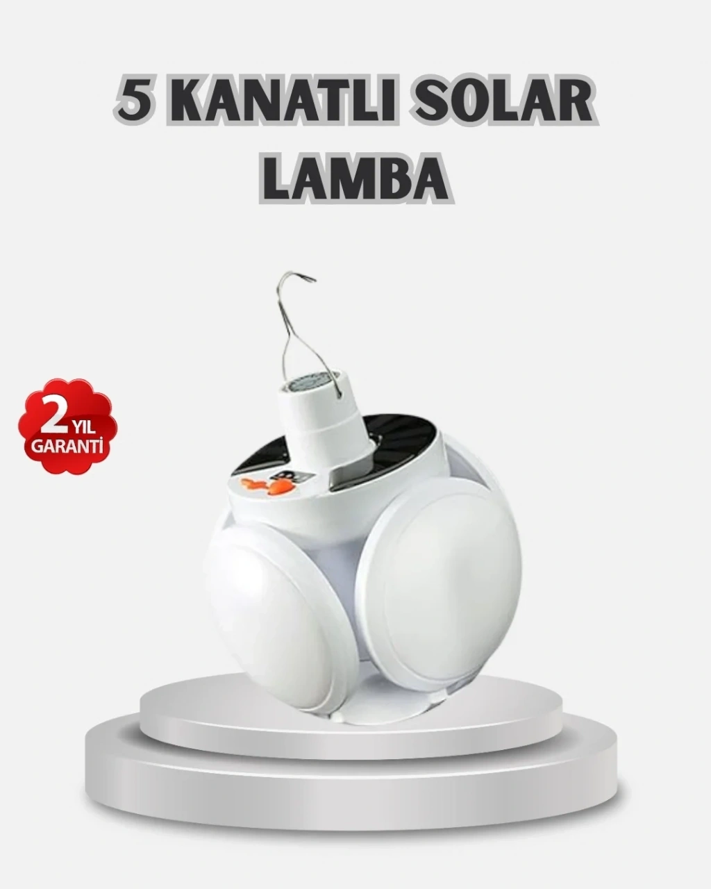 Bu LED kamp lambası, taşınabilirliği ve kullanım kolaylığıyla öne çıkar. Katlanabilir 5 kanatlı yapısı sayesinde ışık açısını dilediğiniz gibi ayarlayabilir, geniş veya odaklı aydınlatma sağlayabilirsiniz. Askı halkasıyla çadırınıza, balkona veya tavan kancasına kolayca asabilirsiniz. Katlandığında kompakt hale gelir ve çok az yer kaplar. Hem güneş enerjisiyle hem de USB kabloyla şarj olabilen çift şarj sistemiyle her yerde kullanılabilir. 2400 mAh lityum pili tam şarjla 6-8 saat kesintisiz ışık sunar. 5 farklı ışık modu sayesinde ister kamp alanında, ister bahçede, ister elektrik kesintilerinde kullanabilirsiniz. IP65 su geçirmez yapısı, açık havada güvenli kullanım sağlar. Güçlü LED teknolojisi sayesinde enerji tasarrufu sağlar, doğayla dost bir çözümdür.
