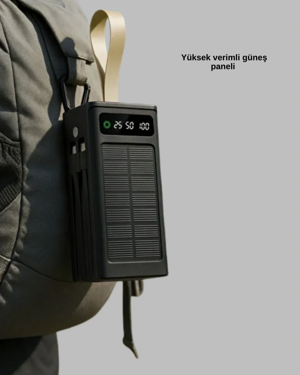 Güneş panelli powerbank, günlük yaşamda ve seyahatlerde kesintisiz enerji ihtiyacını karşılamak için tasarlanmış pratik bir çözümdür. Dengeli kapasitesi sayesinde hem günlük kullanımda hem de uzun günlerde güvenle tercih edilebilir. 375 gram ağırlığı ile güçlü bir performans sunarken taşınabilirliğini korur ve çanta içinde rahatça taşınabilir.Üzerinde bulunan yüksek verimli güneş paneli, özellikle açık alanlarda ek enerji desteği sağlar. Kamp, piknik, yürüyüş ve seyahat gibi durumlarda priz bulma zorunluluğunu azaltarak kullanıcıya özgürlük sunar. Güneş enerjisi destekli yapısı, powerbankin kullanım süresini uzatmaya yardımcı olur ve açık hava aktivitelerinde büyük avantaj sağlar.Üst kısmında yer alan LED aydınlatma, karanlık ortamlarda ek ışık ihtiyacını karşılamak için idealdir. Gece yürüyüşlerinde, kamp alanlarında veya acil durumlarda pratik bir el feneri görevi görür. Dijital şarj göstergesi sayesinde kalan enerji seviyesini anlık olarak takip edebilir, ne zaman şarj etmeniz gerektiğini kolayca anlayabilirsiniz.Birden fazla cihazı aynı anda şarj edebilme özelliği, powerbanki oldukça fonksiyonel hale getirir. Telefon, kulaklık ve benzeri mobil cihazlar tek bir güç kaynağından aynı anda beslenebilir. Bu özellik, özellikle seyahatlerde ve yoğun günlerde zaman kazandırır.Dengeli ağırlığı, dayanıklı yapısı ve çok yönlü kullanımı sayesinde güneş panelli powerbank, hem şehir hayatında hem de doğa aktivitelerinde güvenilir bir enerji kaynağı arayanlar için ideal bir tercihtir.