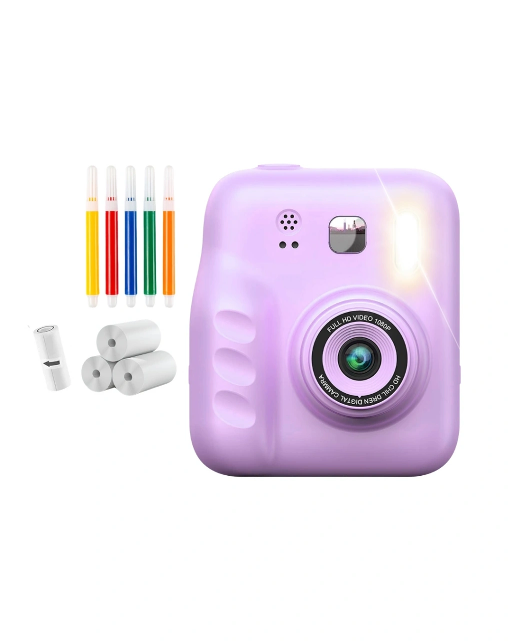 Çocukların fotoğrafçılığa ilk adımını eğlenceli hale getiren bu kamera, anında baskı özelliği ile fark yaratır. Ürünle birlikte gelen 4 rulo baskı kağıdı ve 5 adet kalem hediyesi, kullanım deneyimini çok daha zengin hale getirir.Çocuklar çektikleri fotoğrafları anında basabilir ve bu fotoğrafları boyayarak kendi tasarımlarını oluşturabilir. Bu süreç hem eğlenceli hem öğreticidir.HD ekran ile çekilen görüntüler net şekilde görüntülenir. Basit arayüzü sayesinde kullanım oldukça kolaydır.Ön ve arka kamera desteği ile farklı açılardan çekim yapılabilir. Hafif ve ergonomik yapısı sayesinde taşınması kolaydır.Hafıza kart desteği ile içerikler saklanabilir. Dayanıklı yapısı ile çocuk kullanımına uygundur.Hediye içerikleri ile birlikte oldukça avantajlı bir üründür.