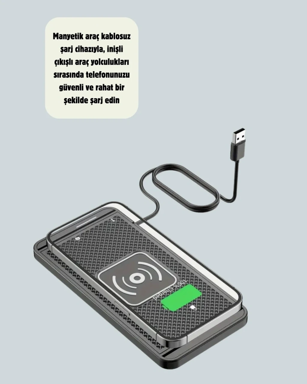 • Hızlı Kablosuz Araç Şarj Cihazı – Manyetik Pad, Aşırı Isınma Korumalı