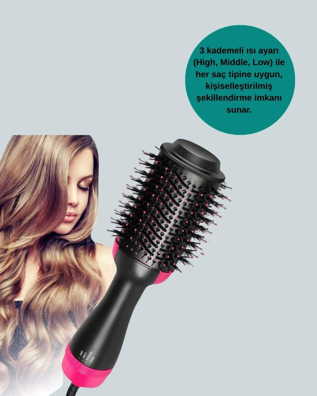 Profesyonel saç şekillendirme deneyimini evinize getiren bu fönlü fırça, tek adımda kurutma ve şekillendirme imkânı sunar. Oval fırça tasarımı, kökten uca hacim kazandırır ve saçın doğal yapısını bozmadan pürüzsüz bir bitiş sağlar.Negatif iyon teknolojisi, saç tellerinde statik elektrik oluşumunu engeller, nem dengesini koruyarak parlak ve sağlıklı bir görünüm verir. 3 farklı ısı modu ve soğuk hava fonksiyonu ile her saç tipine uygundur. Hafif ve ergonomik yapısıyla kolay kullanım sağlar.Ürün Özellikleri: Güç: 1200W 3 ısı kademesi Oval fırça 2,5 m dönebilen kabloZaman kazandıran, pratik ve etkili bir saç bakım aracıdır.