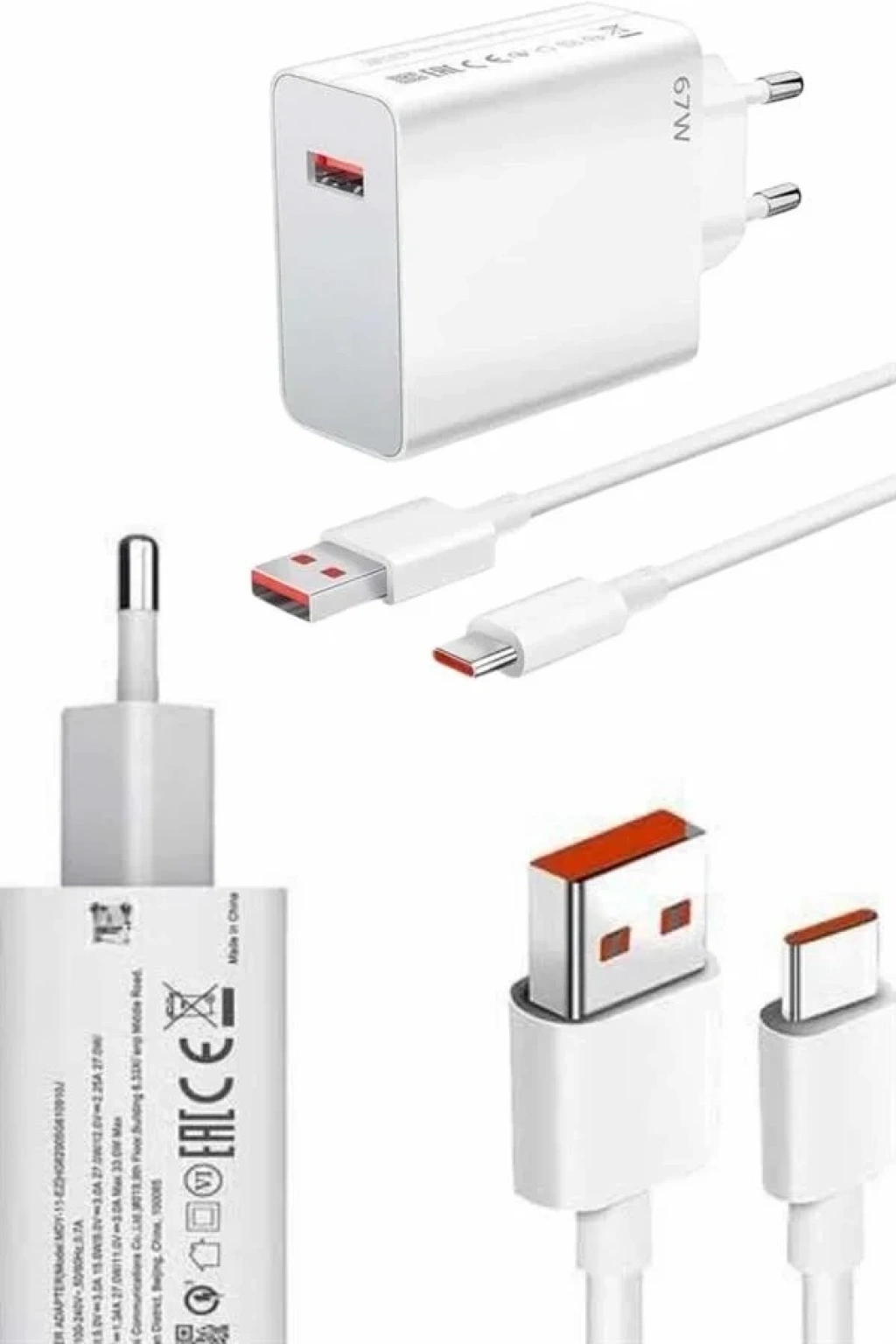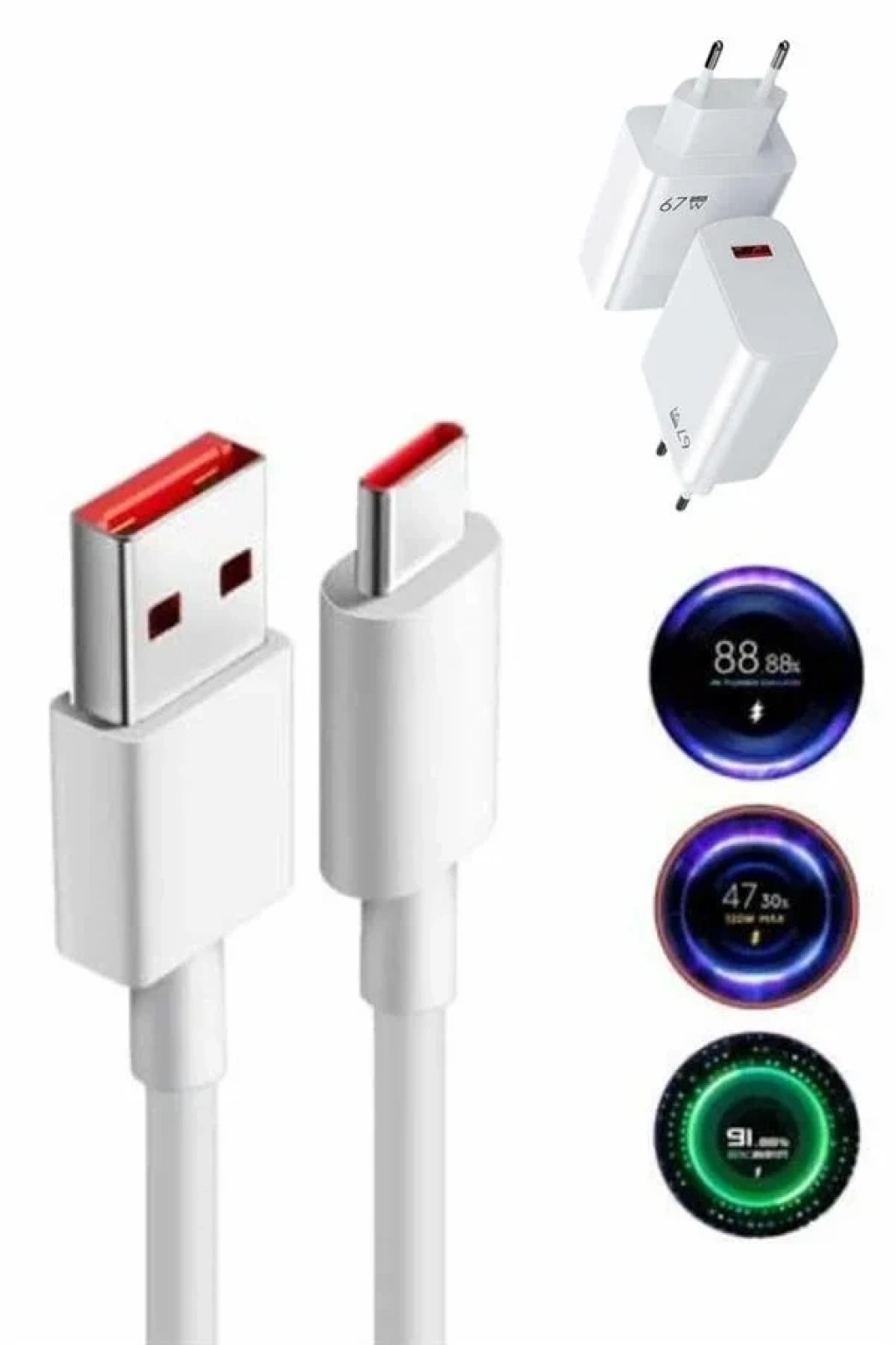 Hızlı Şarj Aleti Adaptörü Kablo Seti 67w Uzun Ömürlü Beyaz