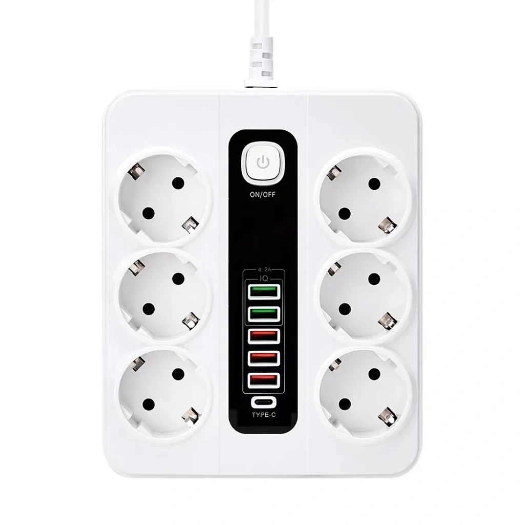 Birden fazla cihazı ve cihazı aynı anda şarj edebilen 4 EU AC Jack, 4 USB-A,2 Type C bağlantı noktasına sahiptir.
