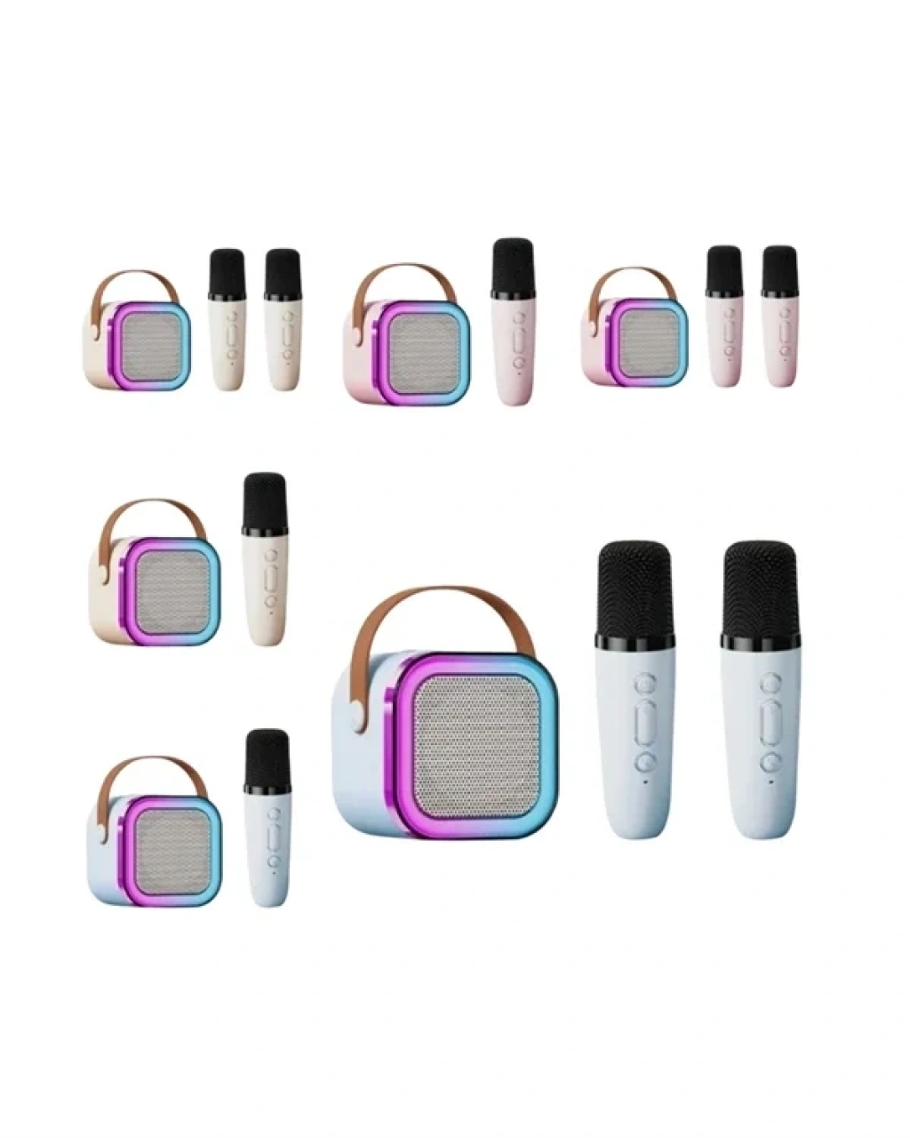 Bu mini karaoke hoparlör, eğlenceyi taşınabilir hale getiriyor. Kompakt boyutları, saplı yapısı ve hafifliği sayesinde dış mekanlarda da rahatlıkla kullanılabilir. Plajda, parkta, piknikte veya tatilde müziğin keyfini çıkarabilirsiniz. Üründe iki adet kablosuz mikrofon bulunur. Mikrofonlardan birinde 5 farklı ses efekti vardır. Bu efektler çocuklar için oldukça eğlencelidir. Cihazda Bluetooth 5.0 bağlantı sistemi bulunur ve tüm akıllı cihazlarla kolayca uyum sağlar. USB ve AUX girişleri sayesinde farklı müzik kaynaklarından ses alınabilir. Type-C portu sayesinde hızlı şarj olur. Ritimle uyumlu LED ışıklar ortama canlılık katar. Özellikle çocuklar, gençler ve aileler için hem eğlenceli hem de pratik bir çözümdür.