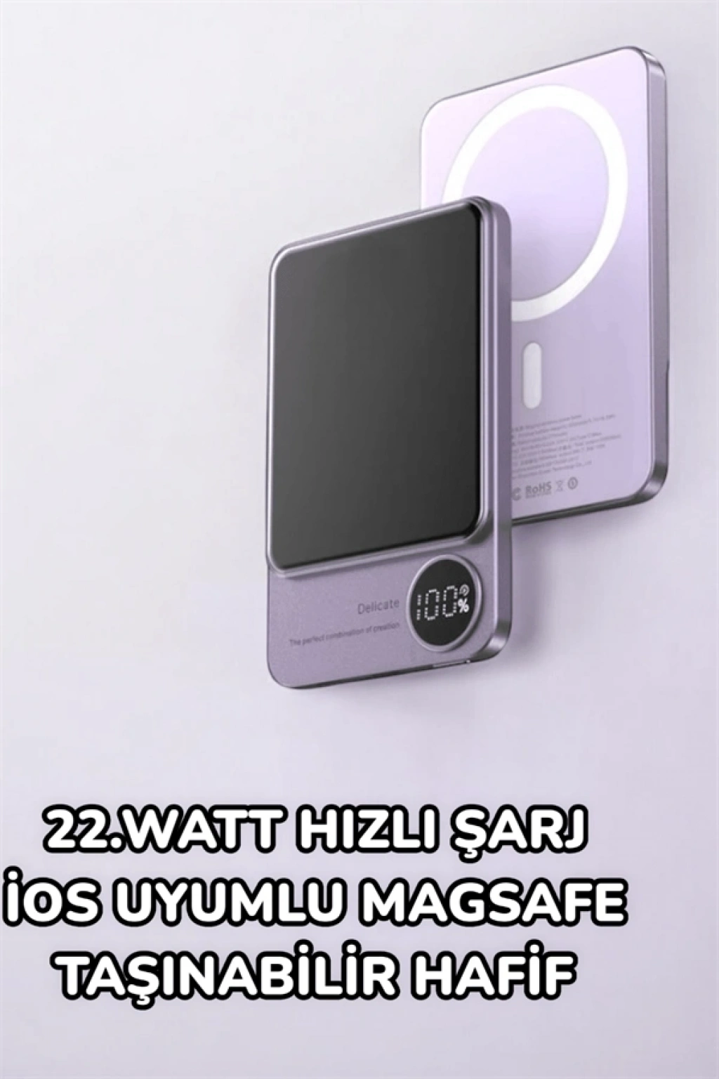 • İos Uyumlu 22.5w Hızlı Şarj Magsafe Powerbank Dijital Göstergeli 10.000 Mah