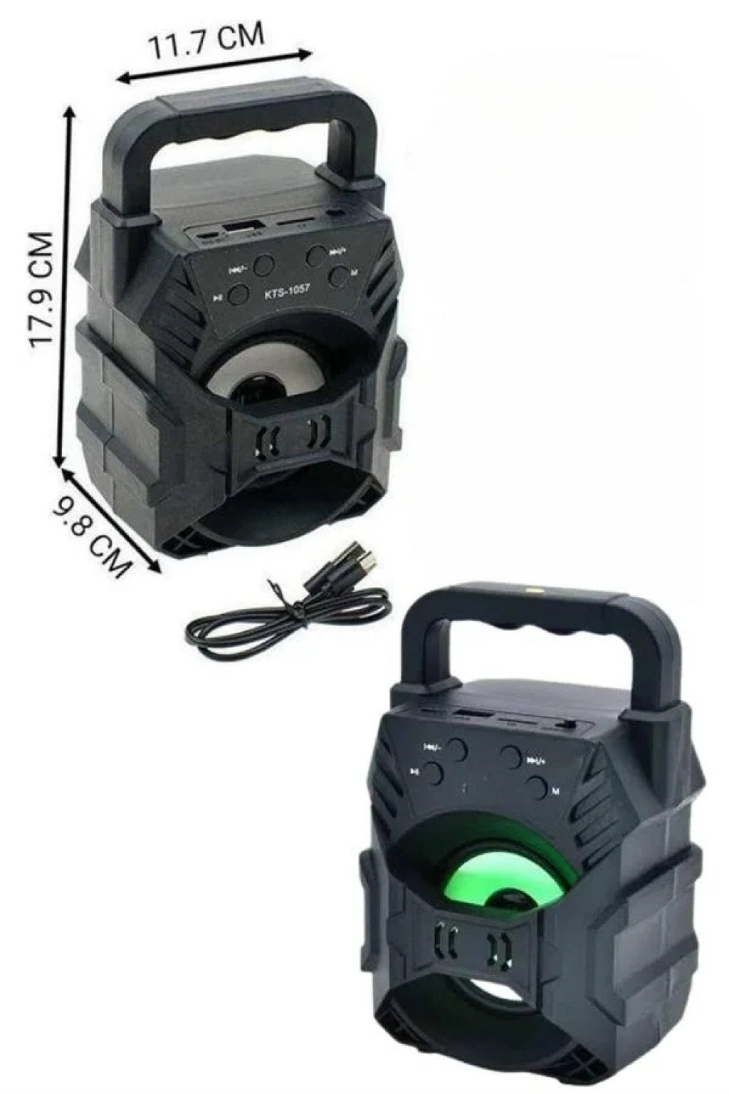 Bu şık ve modern hoparlör, RGB ışıklandırma özelliği sayesinde sadece ses deneyimi sunmakla kalmaz, aynı zamanda 3 boyutlu ışık efektleriyle ortamınıza eğlenceli ve göz alıcı bir atmosfer katar. Tutma kolu sayesinde taşınması son derece pratik olup, özellikle dış mekan aktivitelerinde büyük avantaj sağlar. Dayanıklı malzemelerden üretilmiş olan KT1057 modeli, uzun yıllar boyunca yüksek performansla kullanılabilecek sağlam bir yapıya sahiptir. Açık hava etkinliklerinden ev partilerine kadar her ortamda kaliteli ses ve görsel şölen sunan bu taşınabilir Bluetooth hoparlör, fonksiyonelliği ve es tasarımıyla dikkat çeken bir modeldir.