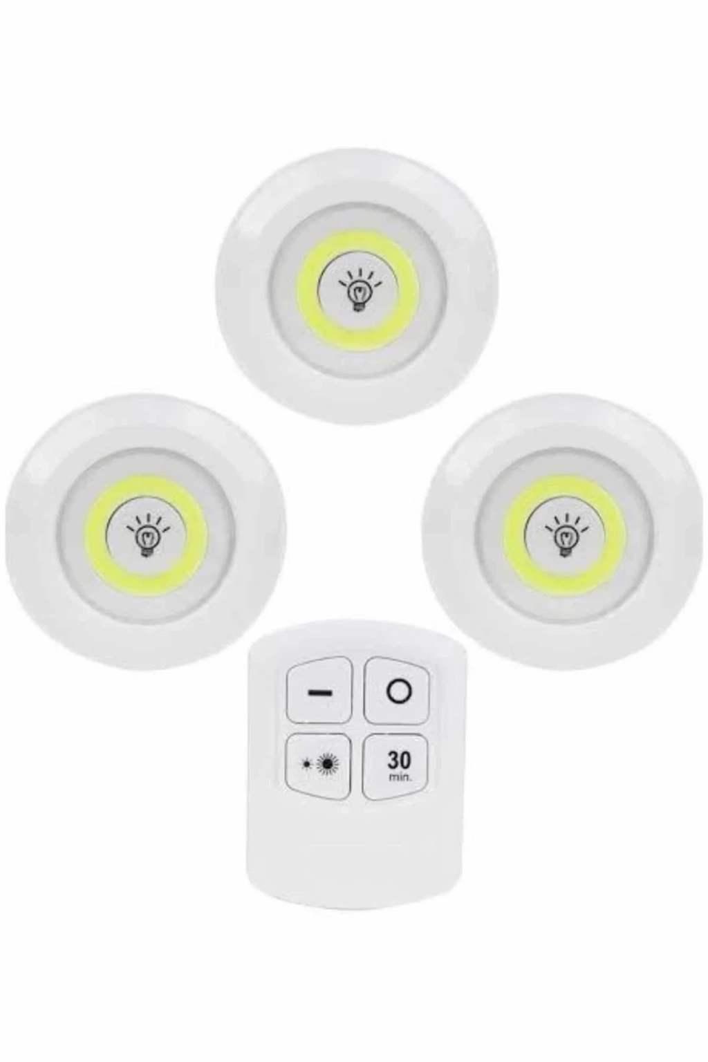 Kablosuz Kumandalı LED Spot Lamba Seti | 3’lü Paket | Işık Ayarı, Zamanlayıcı, Kolay MontajEv içi aydınlatma ihtiyaçlarınıza pratik ve şık bir çözüm sunan bu kablosuz LED spot lamba seti, ergonomik tasarımı ve kullanıcı dostu özellikleriyle öne çıkar. Özellikle banyo, mutfak, gardırop içi ve koridor gibi alanlarda ekstra ışığa ihtiyaç duyduğunuz her yerde kullanıma uygundur. Minimal boyutlarına rağmen güçlü aydınlatma sunan COB LED teknolojisi sayesinde, hem enerji tasarrufu sağlar hem de göz yormayan bir ışık kalitesi sunar.Her spot, 3 adet AAA pil ile çalışır (piller dahil değildir), böylece prize ihtiyaç duymadan her yüzeye monte edilebilir. Ürünle birlikte gelen akıllı kumanda sayesinde, ışıkları uzaktan açıp kapatabilir, ışık şiddetini artırıp azaltabilir veya 30 dakikalık zamanlayıcı fonksiyonu ile otomatik kapanmasını sağlayabilirsiniz. Ayrıca, spotların üzerindeki tuşlar sayesinde manuel kontrol de mümkündür; böylece kumandaya erişiminiz olmasa dahi lambaları rahatça kullanabilirsiniz.Kumandanın kaybolmaması için özel olarak tasarlanmış duvara monte edilebilir haznesi, her zaman ulaşılabilir bir konumda sabit durmasını sağlar. Kurulum konusunda da kullanıcıya büyük kolaylık sunan ürün, çift taraflı yapışkan bantlarıyla birlikte gelir. Bu sayede vidalama ya da matkap gibi işlemlere gerek kalmadan, lambaları düz ve temiz yüzeylere saniyeler içinde sabitleyebilirsiniz.Set içerisinde 3 adet LED spot ve 1 adet kumanda bulunur. Fonksiyonel özellikleri, akıllı tasarımı ve kolay montajıyla bu LED spot seti; hem dekoratif hem de ihtiyaç odaklı aydınlatma çözümleri arayan kullanıcılar için ideal bir tercihtir.