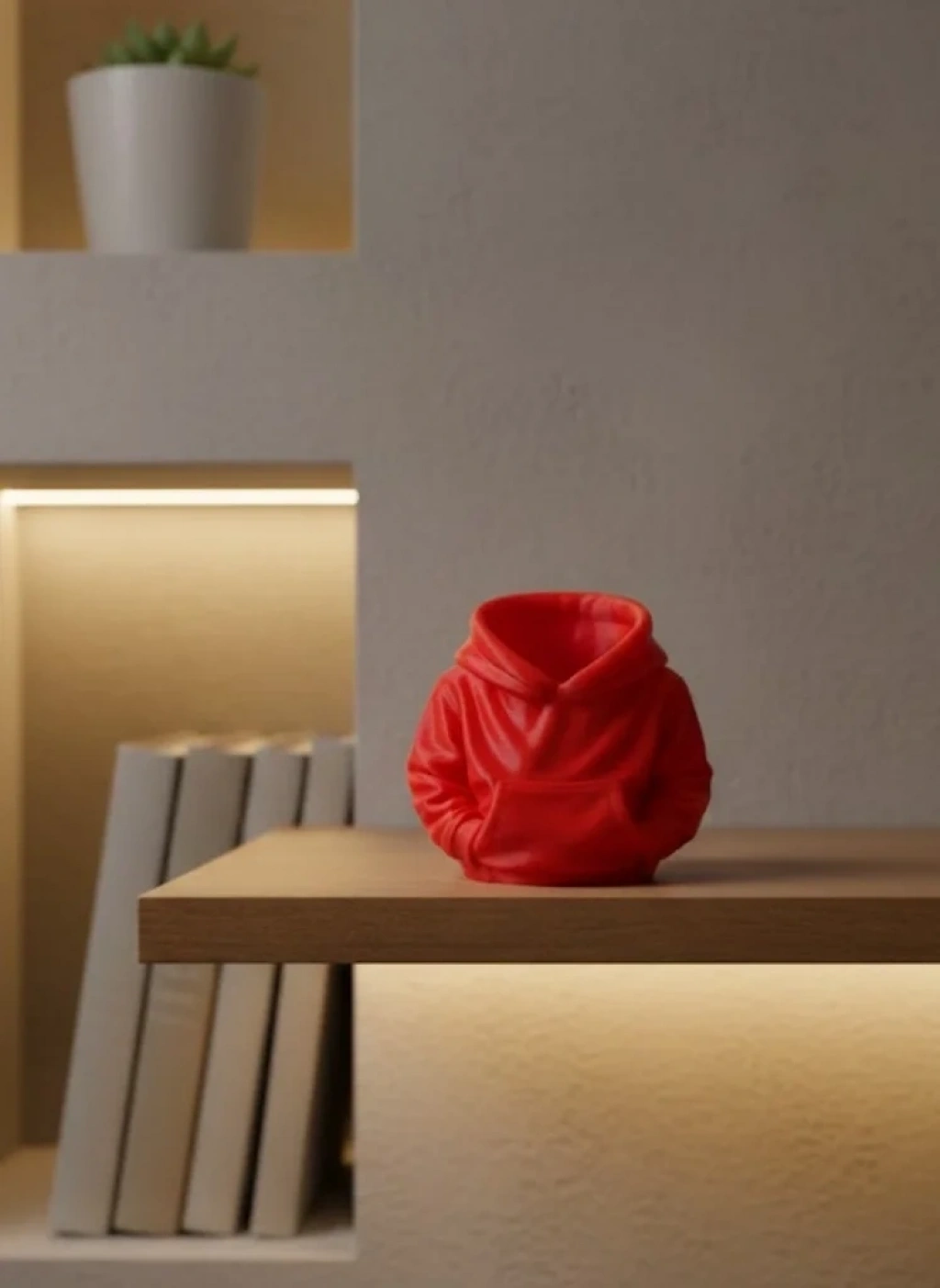 Kırmızı hoodie kalemlik, canlı rengi ve eğlenceli tasarımıyla masa üstlerine enerjik bir hava kazandırmak için tasarlanmıştır. 10x10 cm ölçüsü sayesinde masa üzerinde fazla yer kaplamadan kalem, silgi ve küçük ofis malzemelerini düzenli şekilde saklamaya yardımcı olur. Hoodie formu, ürünü klasik kalemliklerden ayırarak dikkat çekici bir görünüm sunar.Canlı kırmızı rengi, çalışma alanına hareket ve dinamizm katar. Ders çalışma masaları, ofis masaları ve genç odalarında rahatlıkla kullanılabilir. Hem düzen sağlayan hem de dekoratif bir obje olarak öne çıkan bu kalemlik, masa üstünde eğlenceli bir detay oluşturur.Kompakt yapısı sayesinde dar alanlarda bile rahatlıkla konumlandırılabilir. Kalemlerin ve küçük aksesuarların elinizin altında düzenli durmasını sağlar. Tek başına kullanıldığında bile masa üzerinde dekoratif bir tamamlayıcı olarak dikkat çeker.Dayanıklı yapısı ile günlük kullanım için uygundur. Hem işlevsel hem de enerjik bir masa aksesuarı arayanlar için ideal bir tercihtir. Aynı zamanda farklı ve kullanışlı bir hediye alternatifi olarak da değerlendirilebilir.