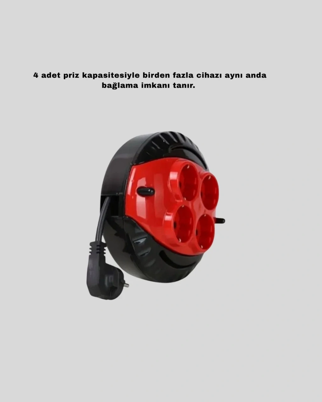 Ev ve ofis kullanımı için uygun olan bu 4 prizli kablolu makara, 3 metre uzunluğundaki kablosu sayesinde geniş bir hareket alanı sağlar. Birden fazla cihazı aynı anda bağlama imkânı sunarak günlük elektrik kullanımını kolaylaştırır.Kırmızı renkli gövdesi sayesinde görünürlüğü yüksektir. Kablolu tipte tasarlanması, enerji aktarımında süreklilik sağlar. Türkiye menşeli üretimi ile kalite ve dayanıklılık sunar.CE uygunluk işareti bulunan ürün, güvenli kullanım standartlarına uygun şekilde üretilmiştir. Akım koruması ve USB portu bulunmayan sade tasarımı ile basit ve işlevsel bir kullanım sunar. İthalatçı garantisi ile desteklenmektedir.