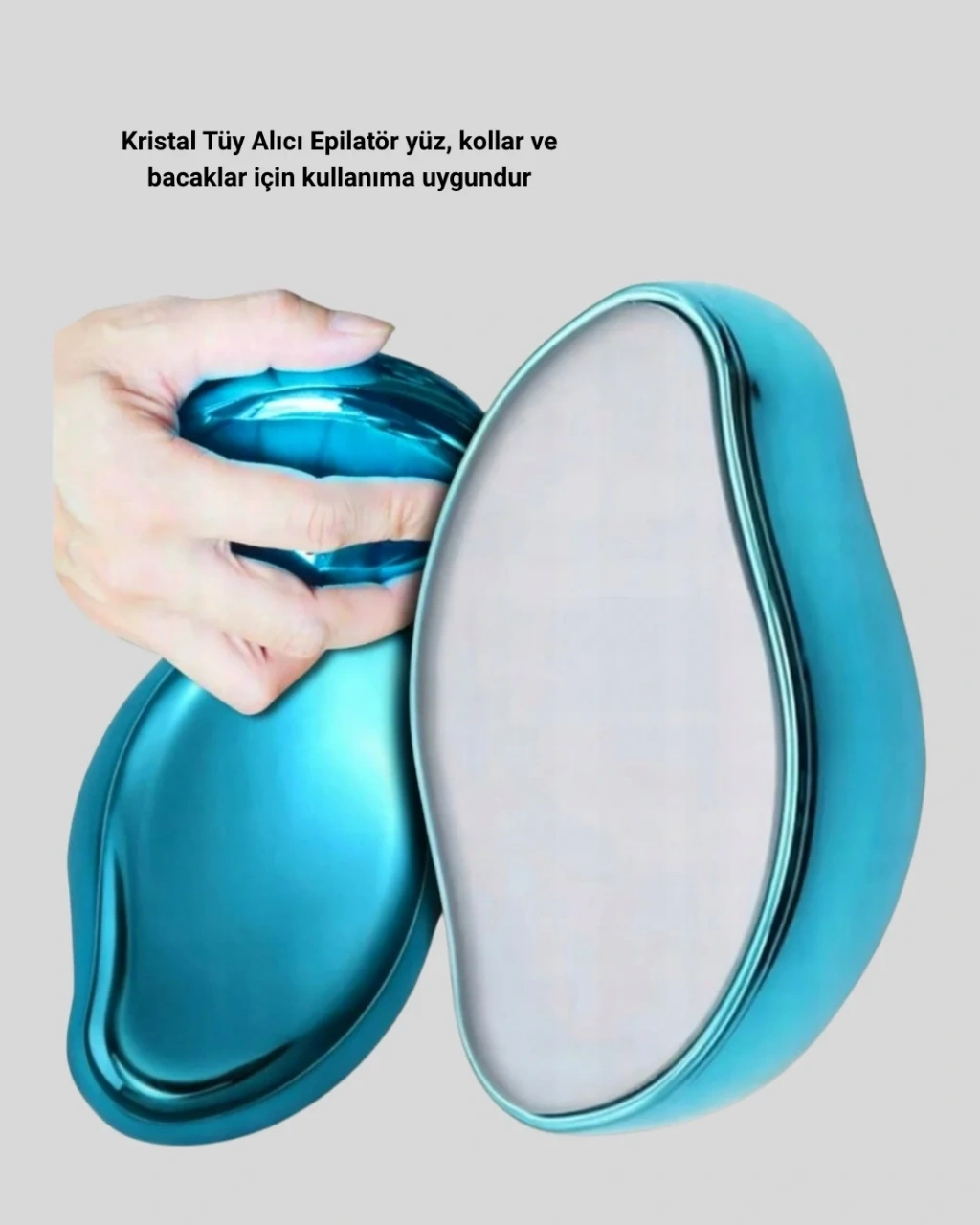 Kristal Tüy Alıcı Epilatör, cilt üzerinde nazik ve etkili tüy temizliği sağlayan tamamen mekanik bir bakım atıdır. Kimyasal kullanmadan, ağdasız, köpüksüz ve jiletsiz bir şekilde sadece tek bir ürünle hem tüylerden kurtulabilir hem de cildinizde peeling etkisi yaratabilirsiniz. Yüz, kol, bacak, el ve hassas bölgelerde rahatlıkla kullanılabilir olması ürünü çok yönlü bir bakım aracı haline getirir.Ürünün kristal yüzeyi, cilt üzerindeki tüyleri temasla aşındırarak temizler. Aynı zamanda ölü deri tabakasını uzaklaştırdığı için cilt tonunun daha aydınlık görünmesine katkı sağlar. Haftada 2–3 kez düzenli kullanım; tüylerin daha ince çıkmasına, cildin daha pürüzsüz olmasına ve zamanla daha az tüy çıkmasına yardımcı olabilir.Kullanım oldukça basittir: Tüy alınacak bölge ılık suyla yıkanır ve gözeneklerin açılması sağlanır. Kristal epilatör dairesel ve hafif baskı uygulanarak gezdirilir. Cilde zarar vermeyen bu mekanizma tahrişi azaltır ve acısız bir işlem sağlar. İşlem bittikten sonra cihaz yalnızca suyla durulanarak temizlenebilir. Ardından bölgeye nemlendirici sürülmesi cildin daha rahatlamış ve yumuşak kalmasını sağlar.Epilatör aynı zamanda pedikür etkisi oluşturarak topuklarda biriken ölü deriyi temizlemek için de kullanılabilir. Böylece hem tüy alma hem cilt bakım işlevini bir arada sunar.Taşınabilir, hafif ve kompakt yapısı sayesinde seyahatlerde ve günlük yaşamda yanınızdan ayırmak istemeyeceğiniz bir üründür.Krem, jel, tıraş köpüğü veya elektrik gerektirmeden çalışan bu kristal epilatör, ekonomik ve çevre dostu bir bakım çözümü sunar. Acısız, pratik ve hızlı tüy alma deneyimi arayan kullanıcılar için mükemmel bir tercihtir.