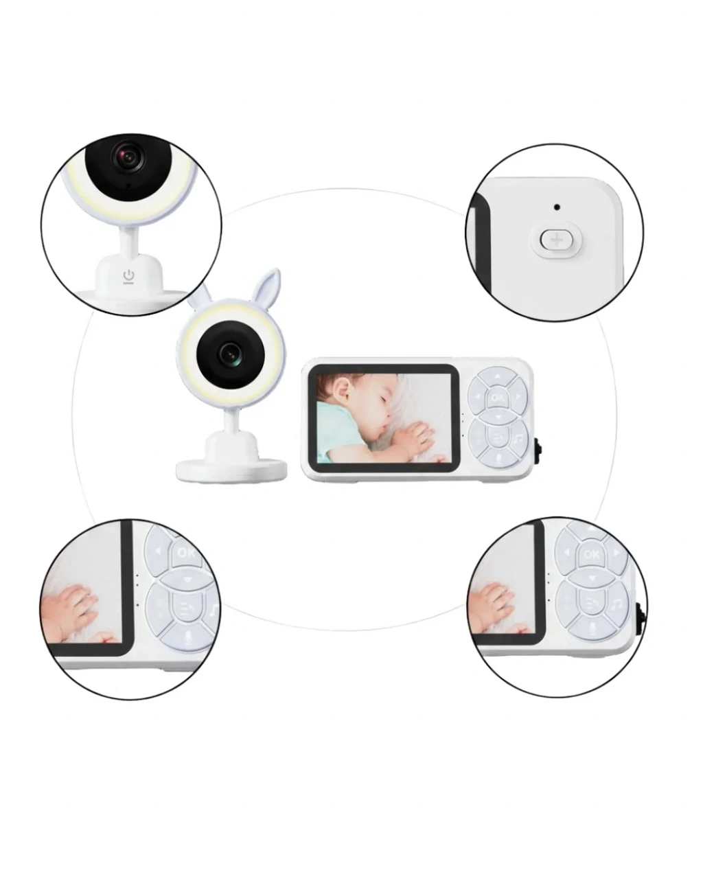 Bu bebek izleme kamerası, ebeveynlerin bebeklerini uzaktan güvenle takip edebilmesi için tasarlanmış modern ve fonksiyonel bir çözümdür. 3.5 inç LCD renkli ekranı, yüksek görüntü kalitesi sunarak bebeğinizin uyku ve oyun anlarını net şekilde görmenizi sağlar. Kompakt ve kullanımı kolay tasarımı sayesinde evin her alanında rahatlıkla kullanılabilir.HD gece görüşü teknolojisi, karanlık ortamlarda otomatik olarak aktif hale gelir ve bebeğinizi rahatsız etmeden net görüntü sunar. Bu özellik özellikle gece kontrollerinde ebeveynlere büyük rahatlık sağlar. Karşılıklı konuşma fonksiyonu, bebeğinizin sesini anında duymanıza ve monitör üzerinden konuşarak onu sakinleştirmenize olanak tanır.Oda sıcaklığı sensörü sayesinde bebeğinizin bulunduğu ortamın sıcaklığı sürekli olarak izlenir. Belirlediğiniz minimum ve maksimum değerlerin dışına çıkıldığında alarm vererek sizi uyarır. Bu özellik, bebeğin konforlu ve sağlıklı bir ortamda bulunmasına yardımcı olur. RGB gece ışığı, yumuşak renk geçişleriyle bebeğin daha huzurlu uyumasını destekler ve gece lambası ihtiyacını karşılar.Cihazda yer alan 6 farklı ninni, bebeğin uykuya geçiş sürecini kolaylaştırmak için özenle seçilmiştir. Ninniler uzaktan kontrol edilebilir ve istenilen zamanda aktif hale getirilebilir. Besleme hatırlatıcı özelliği ile günlük rutinlerinizi düzenleyebilir, önemli saatleri kaçırmadan bebeğinizin bakımını planlayabilirsiniz.4x zoom özelliği, görüntüyü yaklaştırarak daha detaylı izleme imkânı sunar. Aynı sisteme 4 adede kadar kamera bağlanabilmesi, birden fazla bebeği veya farklı odaları aynı anda takip etmeyi mümkün kılar. Geniş çekim mesafesi sayesinde evin farklı noktalarından bağlantı kaybı yaşamadan izleme yapabilirsiniz. Bu bebek kamerası, güvenlik, konfor ve pratikliği bir araya getiren ideal bir ebeveyn yardımcısıdır.