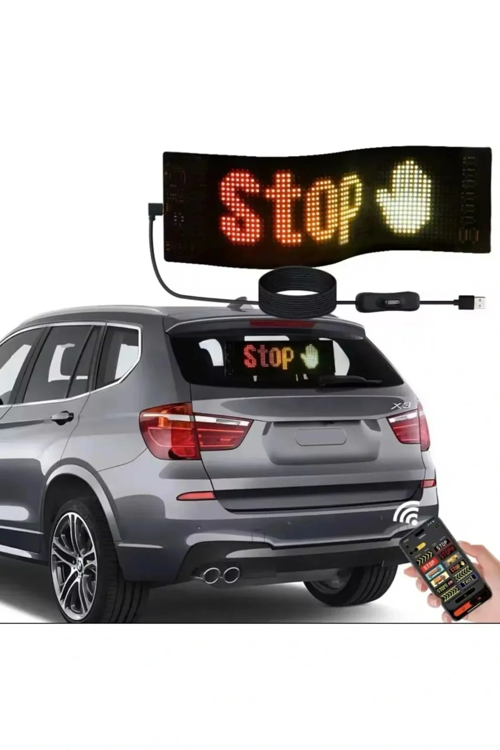 Led Ekran Matrix Panel Cama Yapışan En Büyük Boy 16x96 Led Sayısı Araba Yazısı 12cm-59.5cm