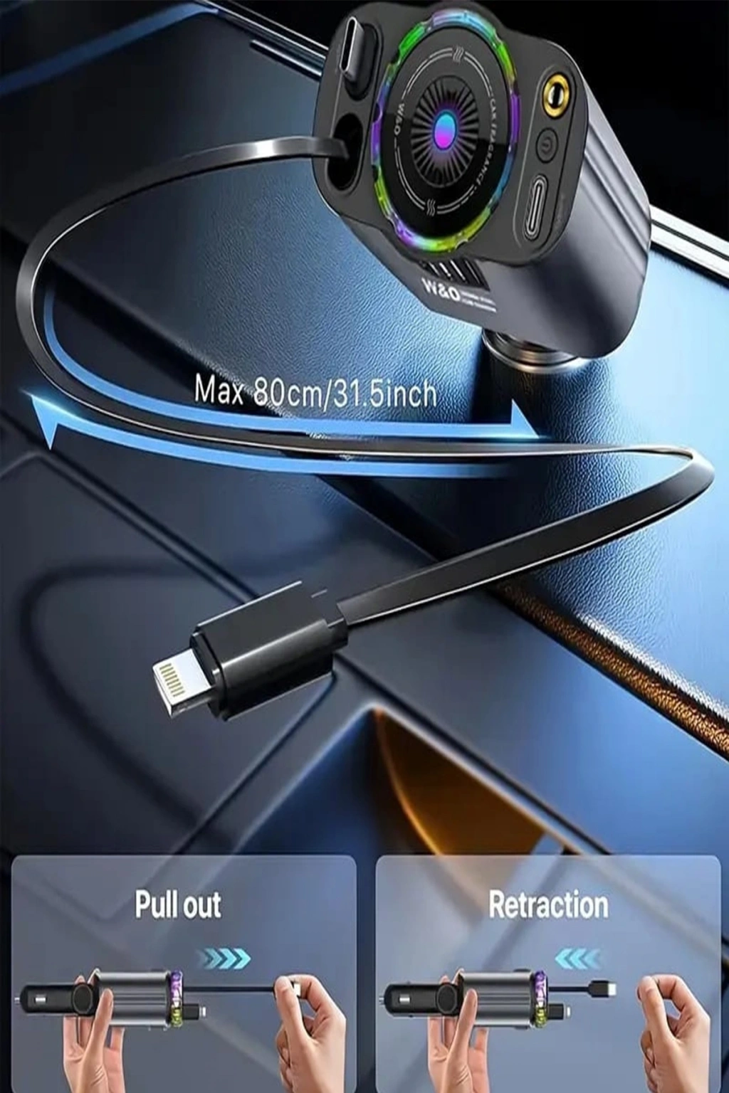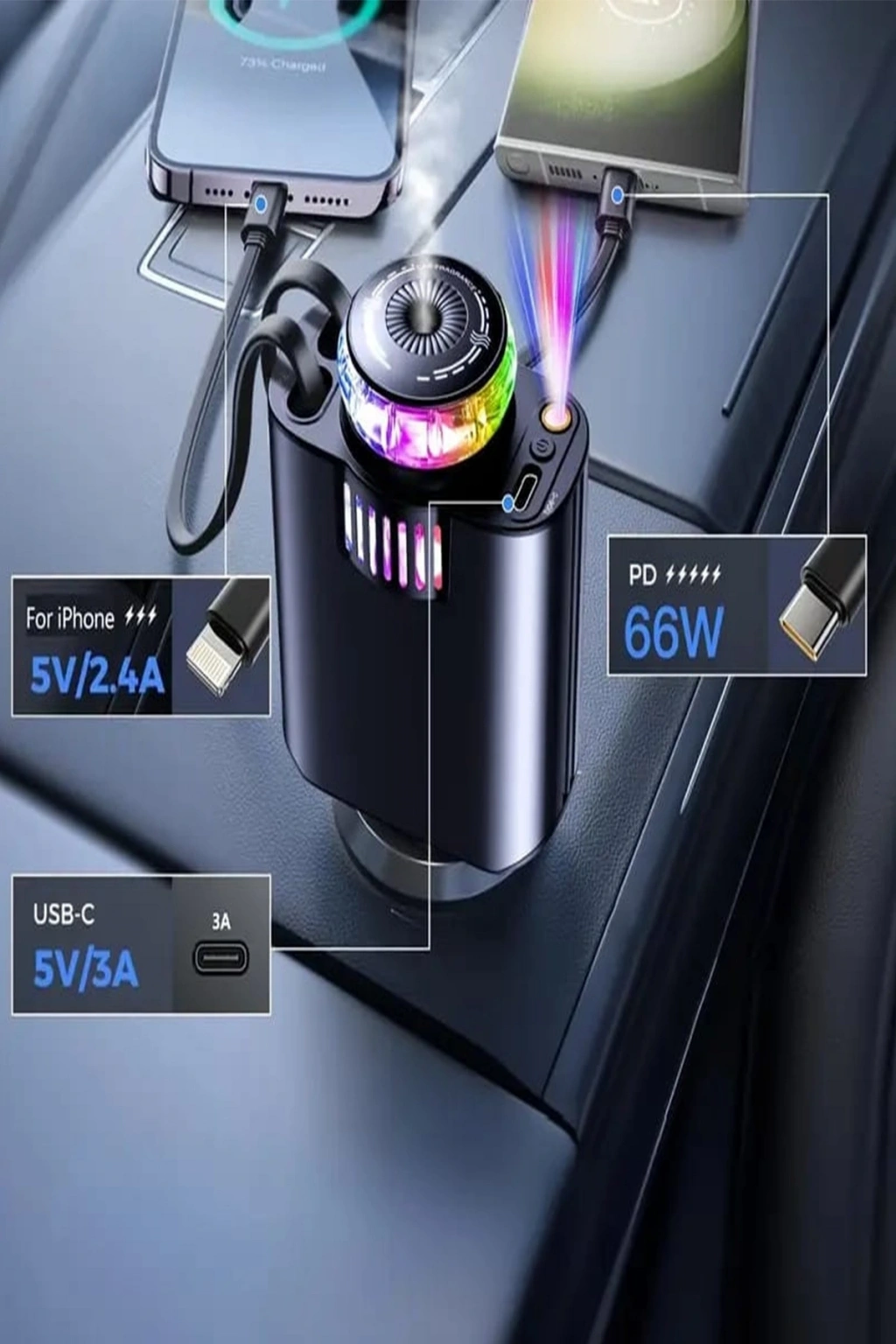 Led Işık Aydınlatmalı 45w Hava Nemlendirici 5’1 Arada Şarj Cihazı Araç İçi Çakmaklık Şarj Aleti
