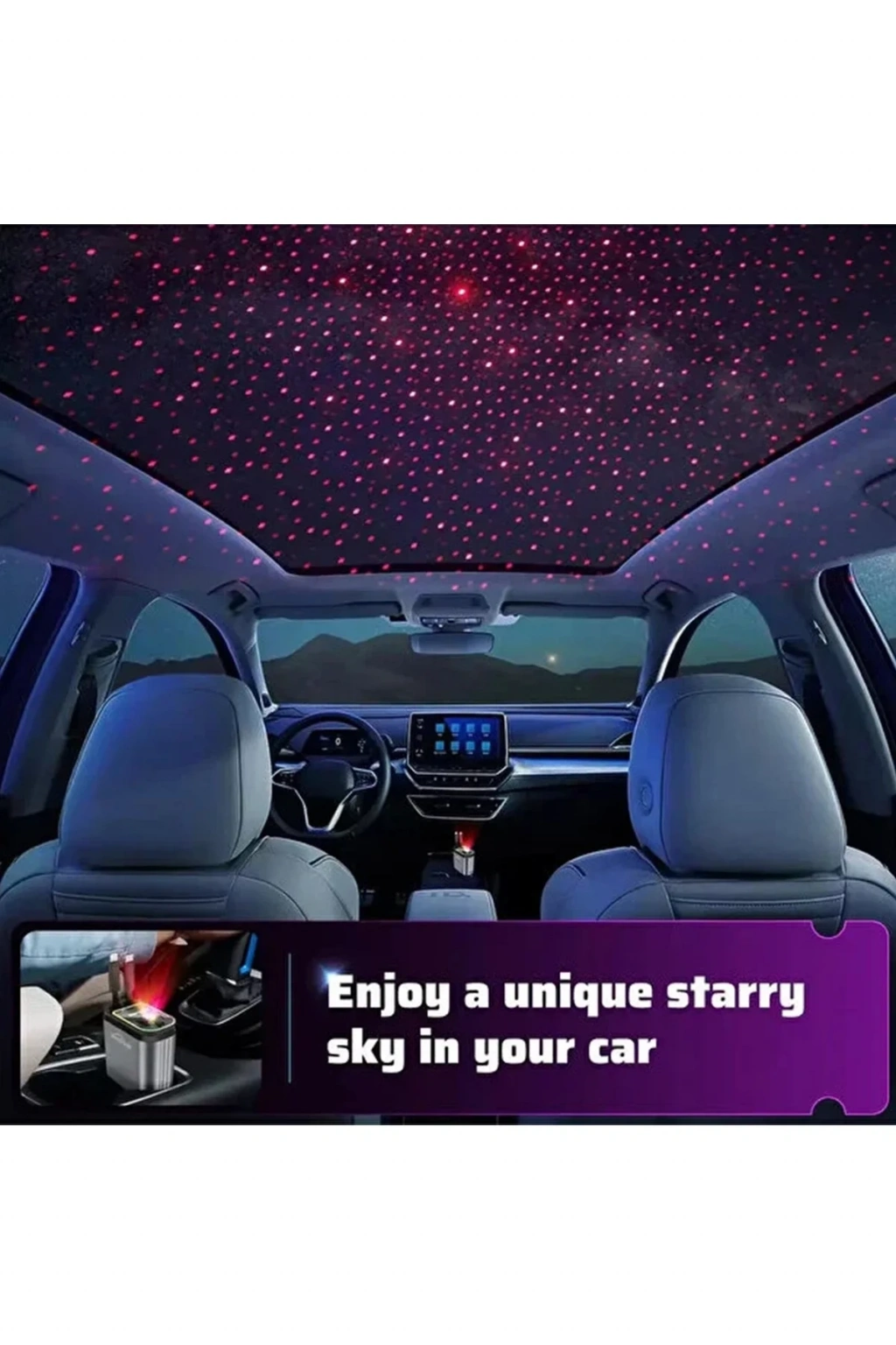 Cihazın üst kısmında bulunan özel LED sistemi, aracınızın tavanına yıldızlı bir gökyüzü yansıtır. Gece sürüşlerinde hem şık bir ambiyans oluşturur hem de şarj portlarını kolayca bulmanızı sağlar.