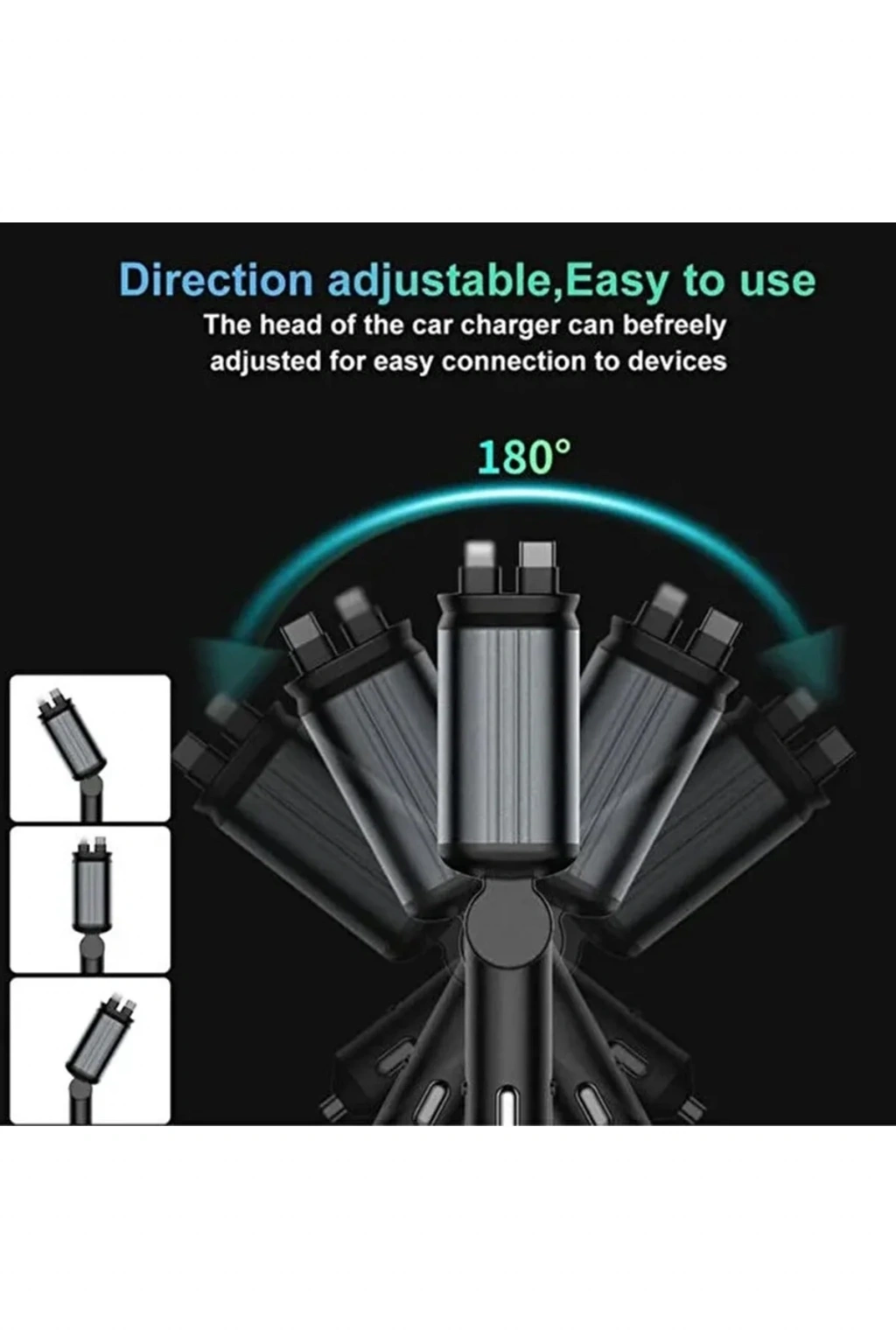 Şarj fişi sağa ve sola 180 derece ayarlanabilir yapıdadır. Bu sayede çakmaklık girişinin konumuna göre cihazı en uygun açıya getirebilir, engebeli yollarda ve sarsıntılarda bağlantı kopması yaşamazsınız.
