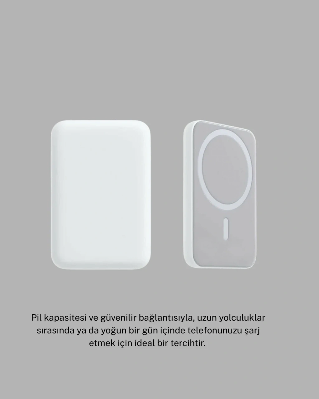 Apple MagSafe Battery Pack, kablosuz şarj teknolojisini en pratik ve zarif haliyle sunar. iPhone’unuzun arkasına manyetik olarak tutunur ve cihazı hareket ettirseniz bile sağlam bir bağlantı sağlar. Bağlandığı anda otomatik olarak şarj işlemine başlar; böylece tuşlara veya kablolara ihtiyaç duymadan kolayca enerji sağlar.Lightning kablo girişiyle çift yönlü şarj özelliği sunan bu batarya, hem kendisini hem de bağlı cihazınızı aynı anda şarj edebilir. 27W veya daha güçlü bir adaptörle kullanıldığında daha kısa sürede dolum yak hızlı şarj avantajı sağlar. Ayrıca cihazınızı kablosuz şarj istasyonuna dönüştürerek 15W’a kadar kablosuz enerji aktarımı yapabilir.Şık ve sade tasarımı, Apple ürünleriyle mükemmel uyum içindedir. Yumuşak dokulu yüzeyi ve kompakt formu sayesinde cebinizde rahatlıkla taşınabilir. Uzun pil ömrü, güvenli bağlantı ve gelişmiş ısı kontrol sistemi ile her an kullanıma hazırdır.MagSafe Battery Pack, hareket halindeyken bile kesintisiz güç isteyen kullanıcılar için mükemmel bir çözümdür. İşte, seyahatte veya günlük yaşamda; şık görünümünden ödün vermeden teknolojiyi yanınızda taşıyın.