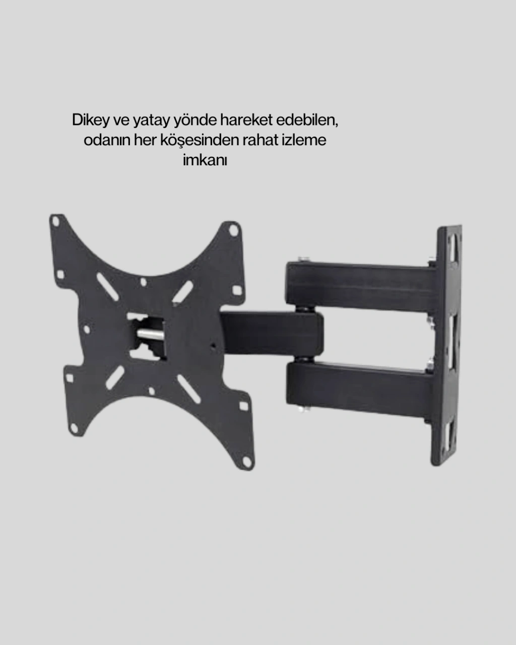 LED ve LCD televizyonlar için uyumlu olan bu duvar askı atı, modern dizaynı ile yaşam alanlarınıza şıklık katar. Hareketli mekanizması sayesinde televizyonunuzu farklı açılardan rahatça izleyebilirsiniz. Özellikle dar alanlarda kullanım için avantaj sağlar.Dayanıklı malzemeden üretilmiş olup uzun süreli kullanım sunar. Montaj atları ile birlikte gönderilir ve kullanıcıya kolay kurulum imkânı tanır.