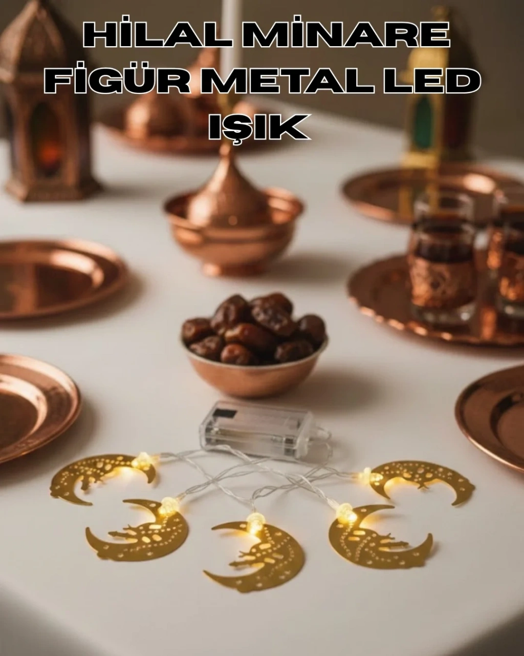 Ramazan ayının manevi atmosferini dekorasyonunuza güçlü bir şekilde yansıtmak için tasarlanan minare detaylı hilal figürlü LED ışık, gold renk metal gövdesiyle bulunduğu ortama zarif ve premium bir hava katar. Net hatlara sahip hilal formu ve iç kısmında yer alan minare detayı, geleneksel Ramazan sembollerini modern bir dekorasyon anlayışıyla birleştirir. Parlak metal yüzeyi ışıkla birleştiğinde şık ve dikkat çekici bir görünüm sunar.Günışığı sarı LED ışık rengi sayesinde iftar sofralarında, salon dekorasyonunda, vitrin ve mağaza süslemelerinde sıcak ve huzurlu bir ambiyans oluşturur. Yumuşak ışık dağılımı, göz yormadan ortamın genel havasını tamamlar ve Ramazan ruhunu ön plana çıkarır. Özellikle akşam saatlerinde loş aydınlatma ile birlikte kullanıldığında dekorasyonun odak noktası haline gelir.2 adet AA pil ile çalışan pilli sistemi sayesinde priz ihtiyacı olmadan kullanılabilir. Bu özelliği ile masa üstü, raf, konsol, pencere önü ve vitrin gibi alanlarda kablo karmaşası olmadan özgürce konumlandırılabilir. Taşınabilir yapısı sayesinde ev dışında kafe, mağaza ve organizasyon dekorasyonlarında da rahatlıkla tercih edilebilir.Metal gövdeli yapısı, plastik modellere kıyasla daha tok bir duruş ve daha kaliteli bir his sunar. Dayanıklı malzemesi sayesinde uzun ömürlü kullanım sağlar ve her Ramazan tekrar tekrar kullanılabilir. Minareli hilal LED ışık, Ramazan dekorasyonu, pilli Ramazan süsleri ve dekoratif metal Ramazan aydınlatmaları arayanlar için es ve anlamlı bir seçimdir.