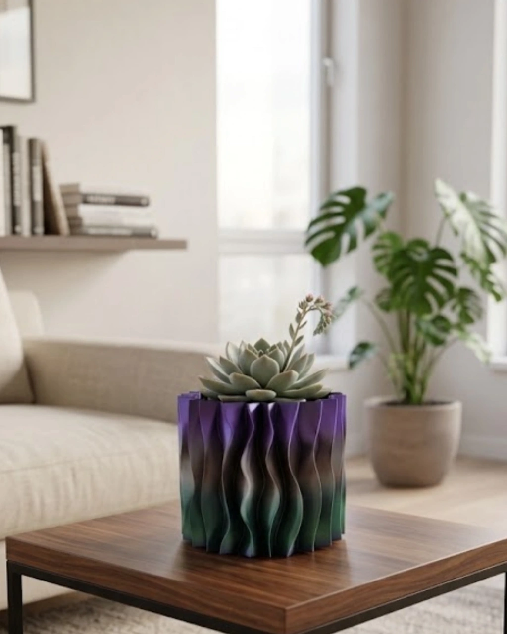Modern dalgalı tasarımlı mor 3D dekoratif vazo, es görünümü ve özgün tasarımı ile yaşam alanlarında dikkat çeken dekoratif ürünlerden biridir. Dalga formunda tasarlanan yüzey yapısı sayesinde klasik vazolardan farklı bir görünüm sunar. Bu özgün tasarım hem modern hem de sanatsal dekorasyon anlayışını yansıtan es bir form oluşturur. Mor renk tonlarının oluşturduğu şık görünüm ise ürüne zarif ve dikkat çekici bir karakter kazandırır.3D baskı teknolojisi kullanılarak üretilen bu dekoratif vazo, dalgalı yüzey formu ve modern geometrik tasarımı sayesinde oldukça es bir görünüm sunar. Ürünün yüzeyindeki dalga formu ışık ile farklı açılarda farklı gölgeler oluşturarak dekoratif bir derinlik hissi yaratır. Bu özellik sayesinde bulunduğu ortamda dikkat çekici bir dekoratif obje olarak öne çıkar.Mor renk tonları dekorasyon dünyasında zarafet, modernlik ve es ile ilişkilendirilen renkler arasında yer alır. Bu nedenle mor dekoratif vazo modern ev dekorasyonlarında, minimalist dekorasyon stillerinde ve sanatsal dekorasyon konseptlerinde oldukça uyumlu bir kullanım sunar.Dekoratif mor 3D vazo özellikle kuru çiçekler, dekoratif dallar veya küçük bitkiler ile birlikte kullanıldığında oldukça şık bir görünüm oluşturur. Bunun dışında masa dekoru, raf dekoru veya sehpa üzerinde dekoratif obje olarak da kullanılabilir.Salon, çalışma odası, kitaplık, televizyon ünitesi veya ofis masası üzerinde kullanıldığında bulunduğu ortama modern ve es bir atmosfer kazandırır. Minimalist dekorasyon, modern dekorasyon veya bohem dekorasyon stilleri ile uyum sağlayabilecek bir tasarıma sahiptir.Modern dalgalı tasarımlı mor 3D dekoratif vazo aynı zamanda dekoratif hediye arayanlar için de oldukça özel bir alternatiftir. Ev hediyesi, yeni ev hediyesi veya ofis hediyesi olarak tercih edilebilir.Es tasarımı, modern görünümü ve sanatsal formu sayesinde bu dekoratif vazo yaşam alanlarında şık ve dikkat çekici bir dekoratif aksesuar olarak öne çıkar.