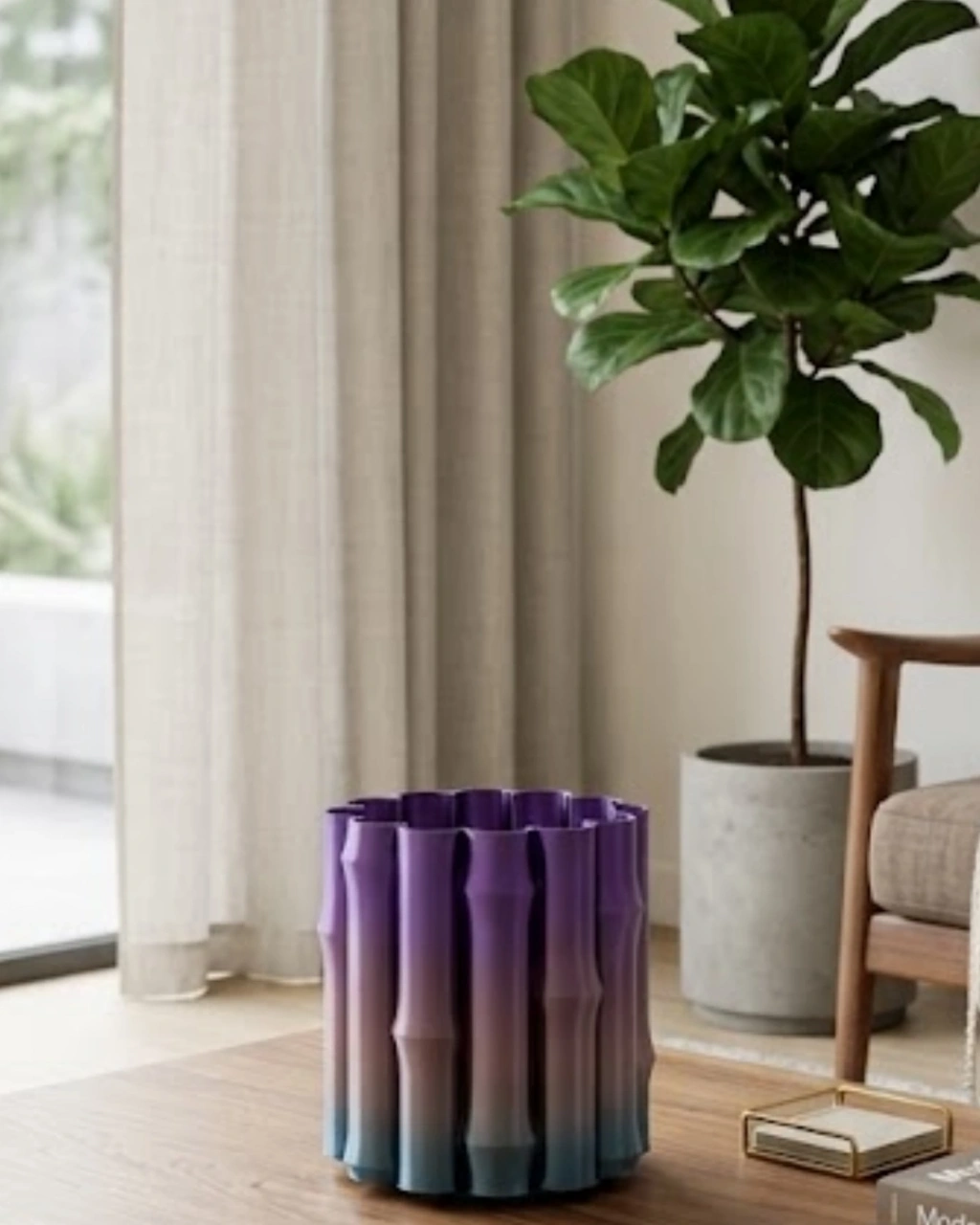 Modern Dekoratif Vazo Mor Gri Geçişli Şık Tasarım Masa Üstü Kullanım