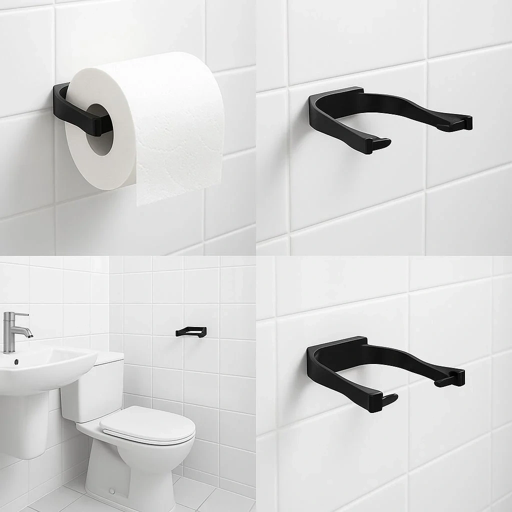 Modern Siyah Tuvalet Kağıtlığı Duvar Tipi Minimal Tasarım Peçetelik