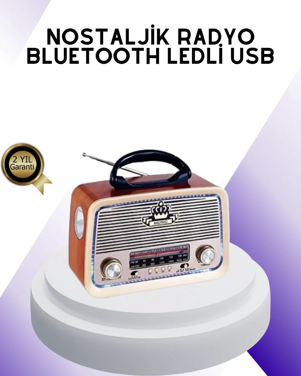 Eskitme tasarımlı Bluetooth nostalji radyo, geçmişin sıcak radyo ruhunu modern teknolojinin konforu ile bir araya getirir. Ahşap kaplama gövdesi ve klasik detayları sayesinde dekoratif bir görünüm sunarken, güçlü teknik özellikleri ile günlük kullanıma tam uyum sağlar. FM, AM ve SW olmak üzere 3 bantta çalışma özelliği sayesinde geniş bir frekans aralığında yayınları net şekilde dinleyebilirsiniz.Bluetooth bağlantı desteği sayesinde cep telefonu, tablet ve diğer uyumlu cihazlardan kablosuz müzik aktarımı yapılabilir. USB ve SD kart girişi ile müzik dosyalarınızı doğrudan oynatma imkânı sunar. AUX girişi sayesinde harici cihazlarla kablolu bağlantı da mümkündür.5 watt ses çıkış gücü, bulunduğu ortamda dengeli ve temiz bir ses performansı sağlar. Dahili şarj edilebilir bataryası ile taşınabilir kullanım sunar; evde, balkonda, ofiste veya kamp alanlarında rahatlıkla kullanılabilir. LED aydınlatmalı tasarımı, özellikle loş ortamlarda şık bir ambiyans oluşturur.Nostaljik görünümüyle dekoratif, modern özellikleriyle fonksiyonel olan bu radyo, hem müzik keyfi hem de es arayan kullanıcılar için ideal bir seçimdir.
