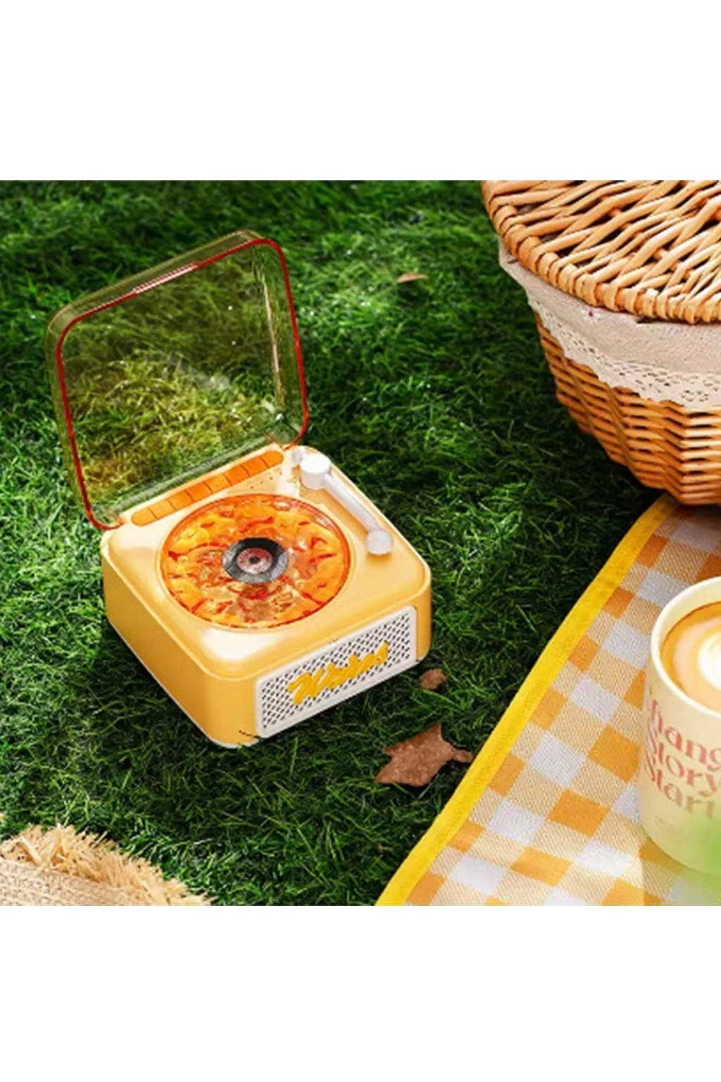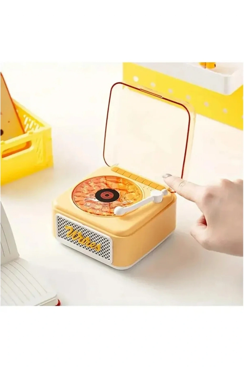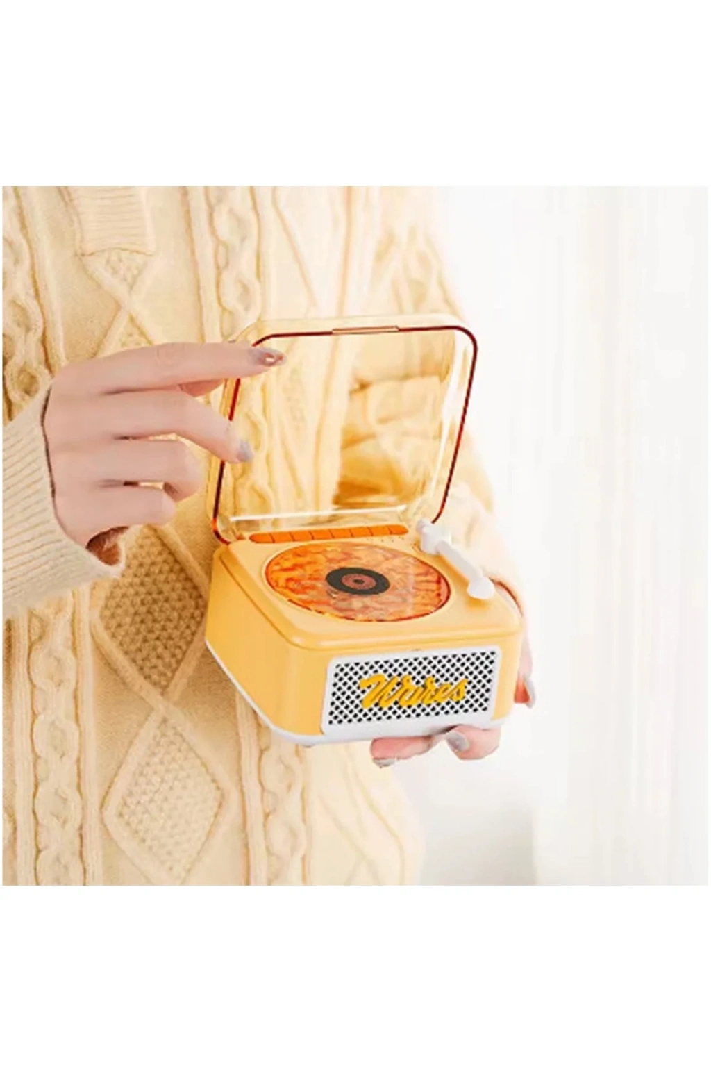 • Nostalji Mini Plak Görünümlü Radyolu Bluetooth Hoparlör 3d Ses Dalgası Retro Müzik Plak Sarı