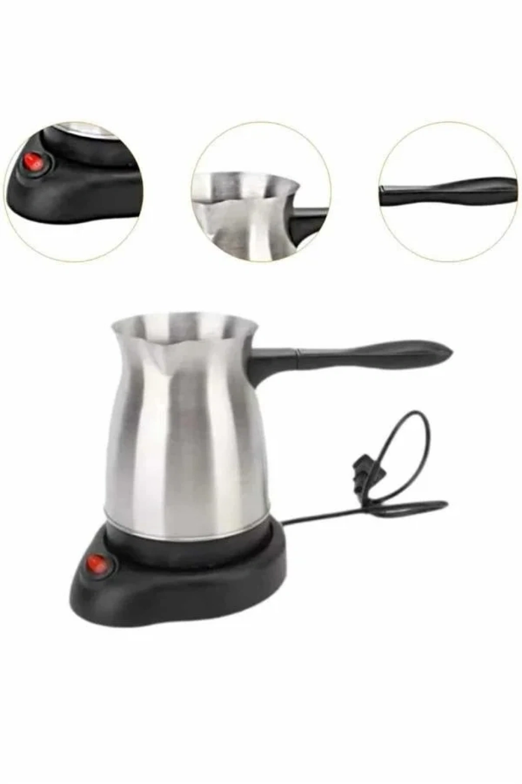 Yüksek performansı ve şık tasarımıyla dikkat çeken bu elektrikli cezve, 800 watt gücü ile mükemmel Türk kahvesi pişirir. 360 ml kapasitesi ile 6 fincana kadar kahve hazırlama imkanı sunar, böylece kalabalık misafirlerinize kolayca lezzetli kahveler ikram edebilirsiniz. Gizli rezistans teknolojisi sayesinde daha hızlı ısınma sağlarken, güvenli kullanım sunar ve temizlik açısından büyük kolaylık sağlar.360 derece dönebilir kablosuz tabanı, kullanım sırasında rahatlık ve esneklik sağlar. Paslanmaz çelikten üretilmiş olan cezve, dayanıklı ve uzun ömürlüdür, aynı zamanda şık bir görünüm sunar. Kolayca temizlenebilen tasarımı, hijyenik bir kullanım sağlar ve her seferinde taze kahve hazırlamanızı mümkün kılar.Kırmızı güç düğmesi ile açma ve kapama işlemleri kolayca yapılabilir. ısınmayan ve ergonomik tasarıma sahip kulpu ise güvenli bir kullanım sağlar. Paslanmaz çelik gövde, hem dayanıklılığı hem de modern görünümüyle mutfağınıza zarif bir dokunuş katar.Bu elektrikli cezve, mükemmel kahveler hazırlamak isteyenler için mükemmel bir seçenek olup, hem işlevsel hem de es açıdan mutfağınıza modern bir dokunuş ekler. 6 fincana kadar kahve hazırlayabilmesi ile kalabalık misafirler için de ideal bir tercihtir.