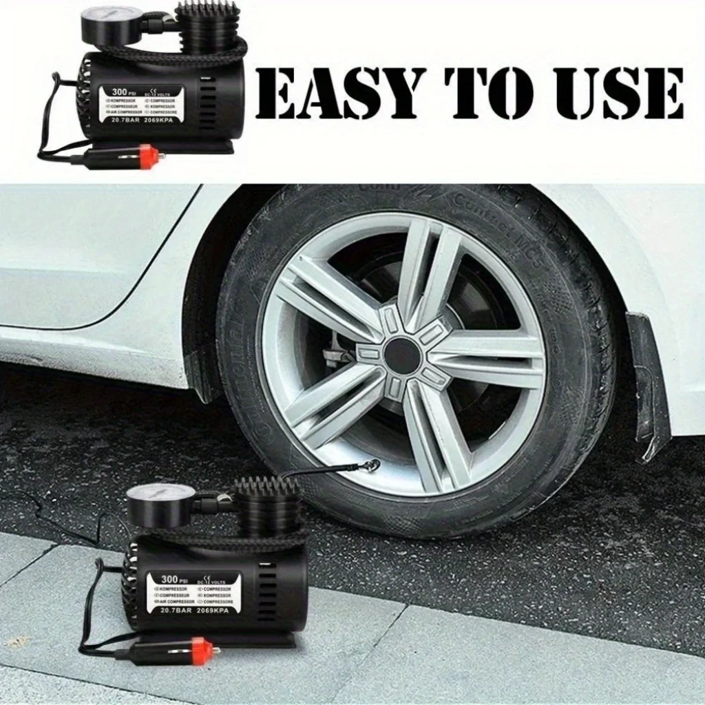 Plastik Gövdeli Siyah Mini Hava Kompresörü, otomobiliniz için ideal bir aksesuardır. Bu kompakt hava kompresörü, acil durumlarda lastik basıncınızı hızla ve kolayca kontrol etmenize yardımcı olur.