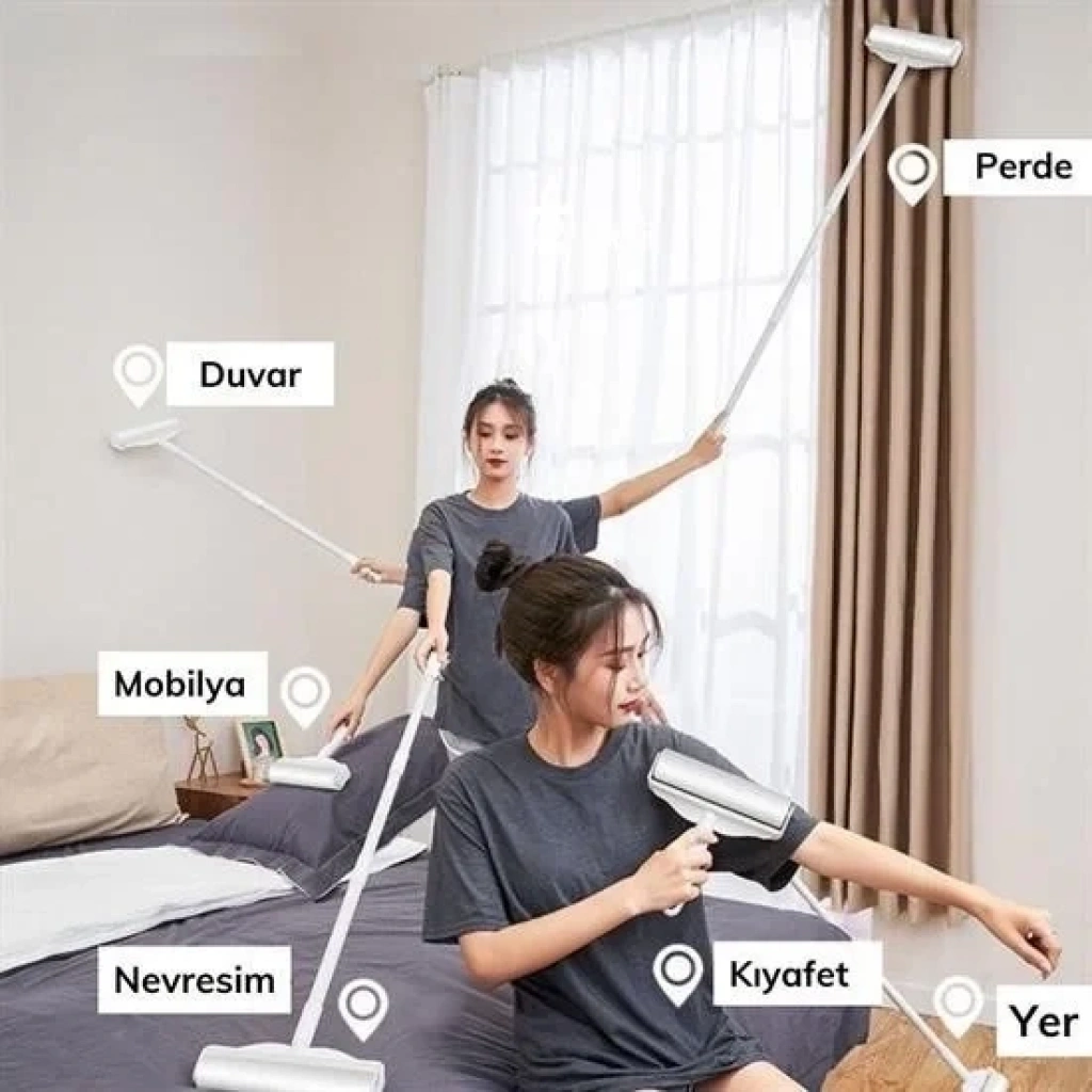 Evdeki tüm yüzeylerdeki tüyleri, tozları ve kırıntıları zahmetsizce temizlemek için tasarlanmıştır.