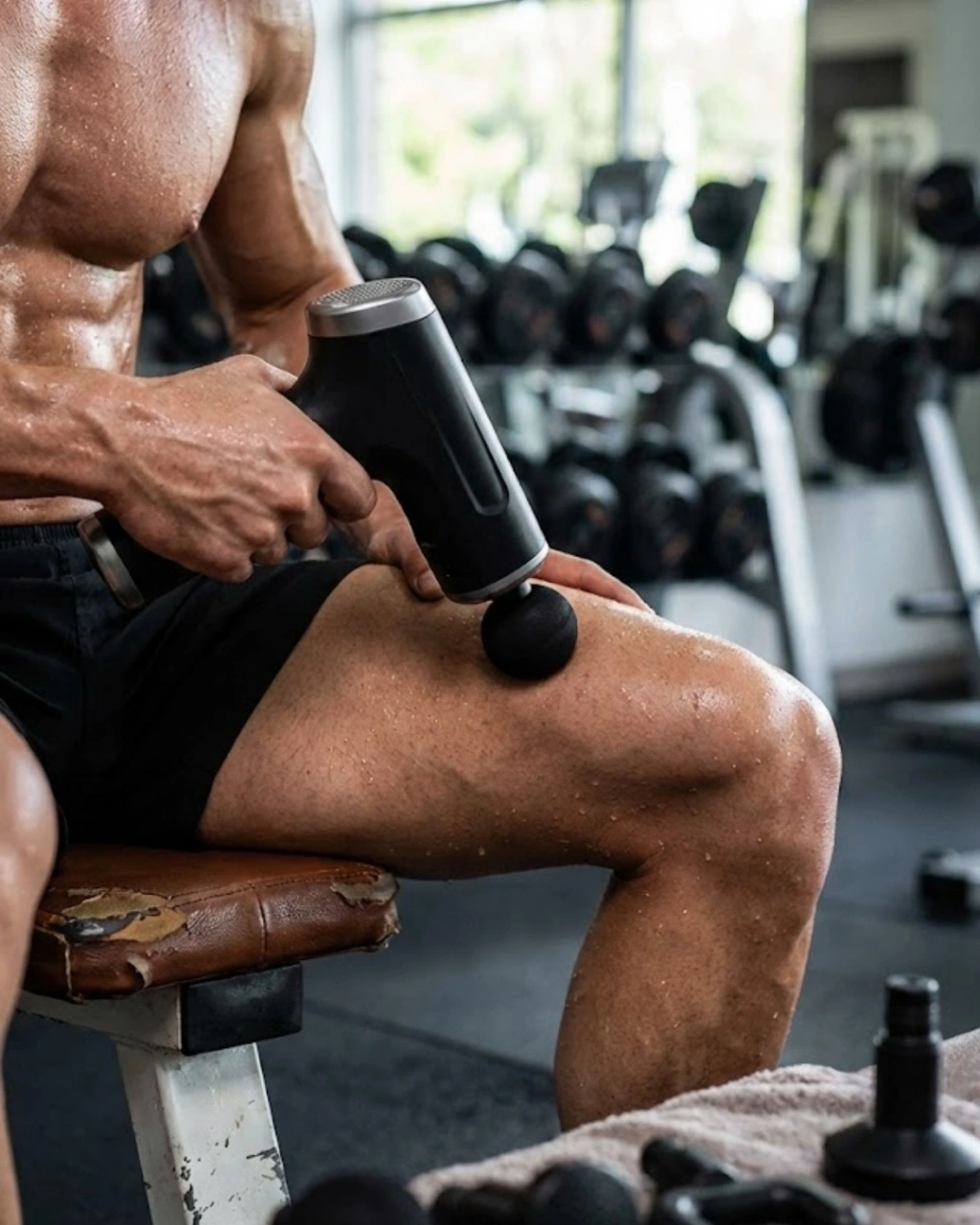 • Profesyonel Masaj Tabancası Sporcu Masaj Aleti 4 Başlıklı Şarjlı Titreşimli