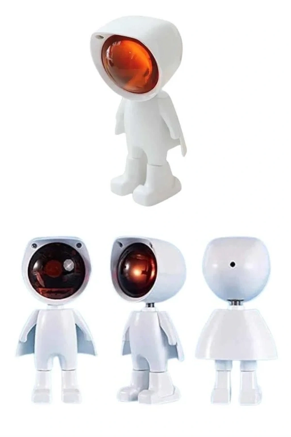 Bu şarjlı gün batımı lambası, sevimli astronot tasarımı ve sıcak renk tonlarıyla bulunduğu ortama hem es bir dokunuş hem de huzurlu bir atmosfer kazandırır. Gün batımı efektli ışık yayılımı sayesinde özellikle akşam saatlerinde loş ve dinlendirici bir ortam oluşturmak isteyen kullanıcılar için idealdir. Şık ve modern tasarımı, lambayı yalnızca bir aydınlatma aracı değil, aynı zamanda dekoratif bir obje haline getirir.Lambanın 5 Watt gücündeki LED ışığı, yumuşak ve göz yormayan bir aydınlatma sağlar. Kafasının 360 derece dönebilmesi ve 60 derece yukarı-aşağı hareket edebilmesi sayesinde ışığı istediğiniz yöne kolaylıkla ayarlayabilirsiniz. Bu esneklik, ister duvara gün batımı efekti yansıtmak ister kitap okurken odaklanmış bir ışık elde etmek isteyen kullanıcılar için büyük avantaj sunar.Ürün, USB ile şarj edilebilen dahili bataryası sayesinde prizden bağımsız çalışabilir ve tam şarjla 3-4 saate kadar kesintisiz aydınlatma sağlar. Evde, dış mekânda, seyahatlerde veya fotoğraf çekimlerinde rahatça kullanılabilir. Özellikle sosyal medya içerikleri, ürün çekimleri veya özel günlerde ambiyans yaratmak için oldukça uygundur.Dokunmatik kontrol özelliği, kullanıcı dostu bir deneyim sunarken aynı zamanda ışığın parlaklığını kolayca ayarlayabilmenizi sağlar. Gece lambası olarak da işlev görebilen bu ürün, uyku öncesi rahatlatıcı bir ortam sunar. Taşınabilir yapısı, ürünü istediğiniz her yerde kullanmanıza olanak tanır.Es ve işlevselliği bir araya getiren bu gün batımı lambası, ister kişisel kullanım ister dekoratif bir hediye alternatifi olarak her yaştan kullanıcıya hitap eder. Romantik ve sıcak bir atmosfer yaratmak isteyenler için ideal bir seçimdir.