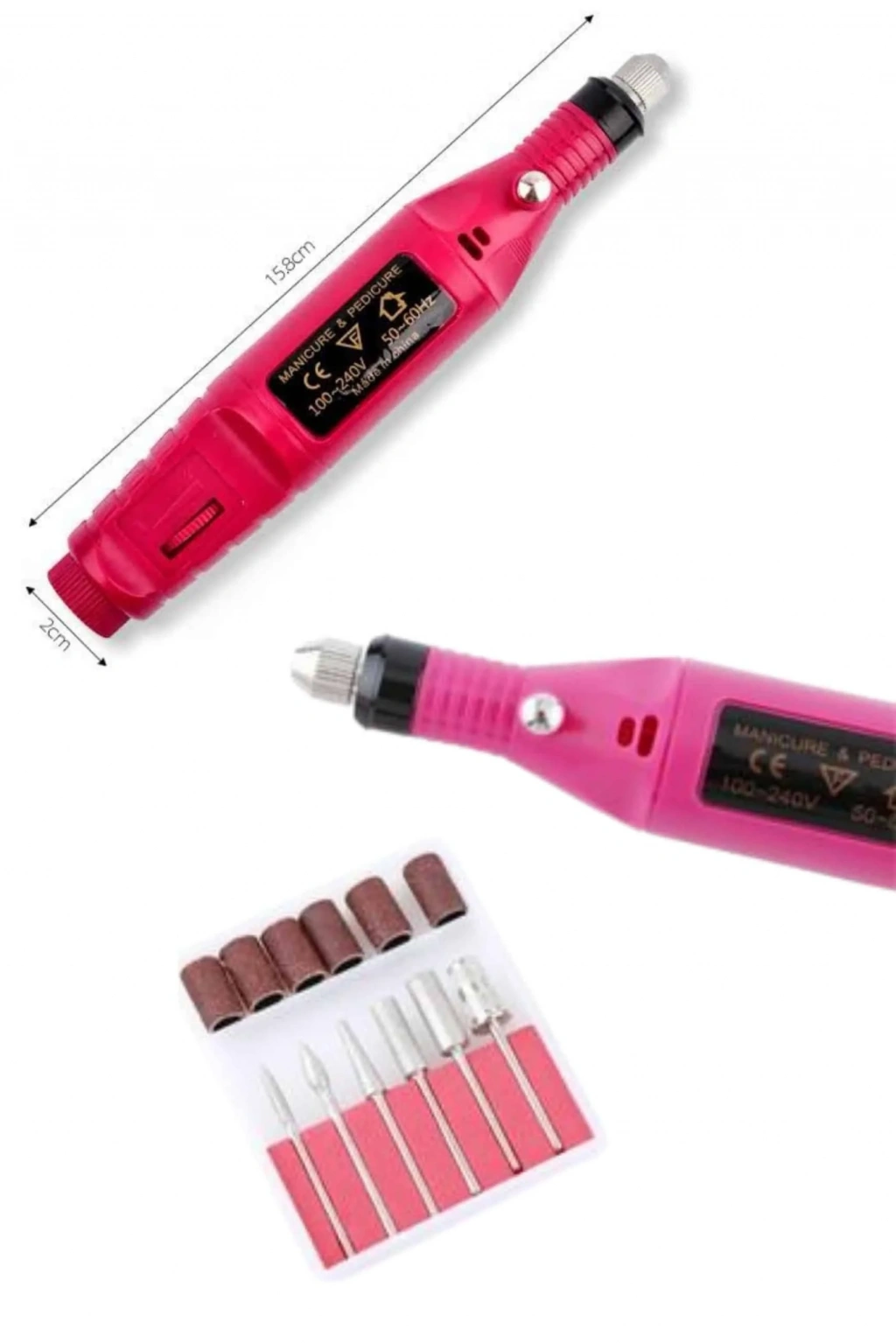 Elektrikli Manikür-Pedikür-Törpü MakinesiEvde kolayca manikür ve pedikür yak tırnaklarınızı kuaförden çıkmış gibi bakımlı hale getirebilirsiniz. Bu set, mükemmel tırnak bakımını sadece birkaç adımda gerçekleştirmenize olanak sağlar. Hem kendiniz hem de sevdikleriniz için harika bir hediye seçeneği!Ergonomik ve Konforlu TasarımHafif ve rahat tutuş sağlamak için kalem şeklinde tasarlanmış olan makine, uzun süreli kullanımda bile ellerinizi yormaz. Düşük gürültü seviyesi ve titreşimsiz çalışma özellikleri ile konforlu bir tırnak bakımı deneyimi sunar.Zengin Aksesuar Seti ile Profesyonel SonuçlarPaket içeriğinde yer alan 6 adet metal uç ve 6 adet zım bantları ile tırnaklarınızı şekillendirebilir, manikür ve pedikür işlemlerinizi profesyonel bir şekilde gerçekleştirebilirsiniz. Bu geniş aksesuar yelpazesi, her ihtimale göre mükemmel sonuçlar elde etmenizi sağlar.Değişken Hız KontrolüMakine, 3000 ile 20000 RPM arasında değişken hız seçenekleri sunar. Hızlı veya yavaş hız ayarlarını ihtiyacınıza göre seçebilir, tırnak bakımınızı kişiselleştirebilirsiniz.Evde Profesyonel Manikür ve PedikürSalon kalitesinde bir tırnak bakımı için ideal olan bu elektrikli cihaz, evde kolayca kullanabileceğiniz profesyonel bir üründür. Bakım rutininizi geliştirin ve zamandan tasarruf edin!