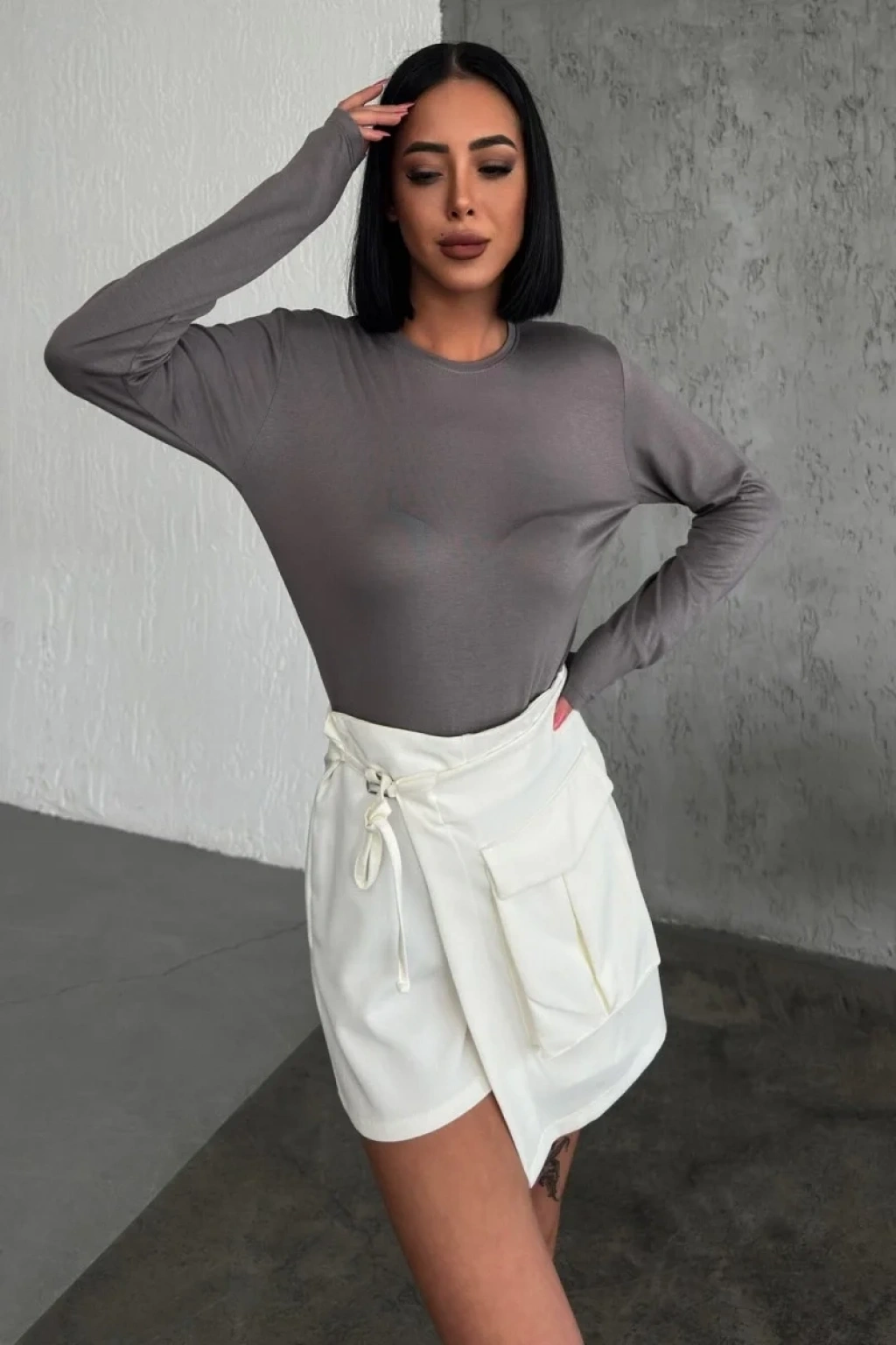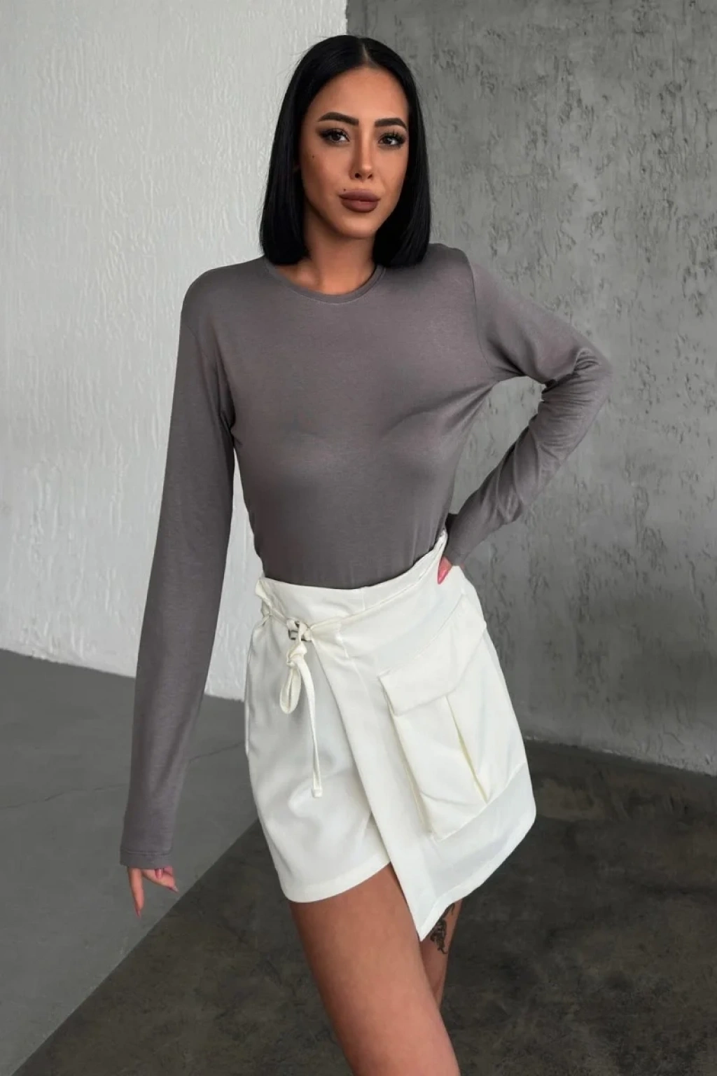 -Öncelikle, bu body'nin füme rengi her türlü kombinasyonla mükemmel uyum sağlar. Fümenin zamansız şıklığı ile her mevsim ve her durumda tarzınızı yansıtabilirsiniz. Uzun kollu tasarımı, serin havalarda sizi sıcak tutarken, bisiklet yaka detayı da hafif bir zarafet katarak görünümünüzü tamamlar.