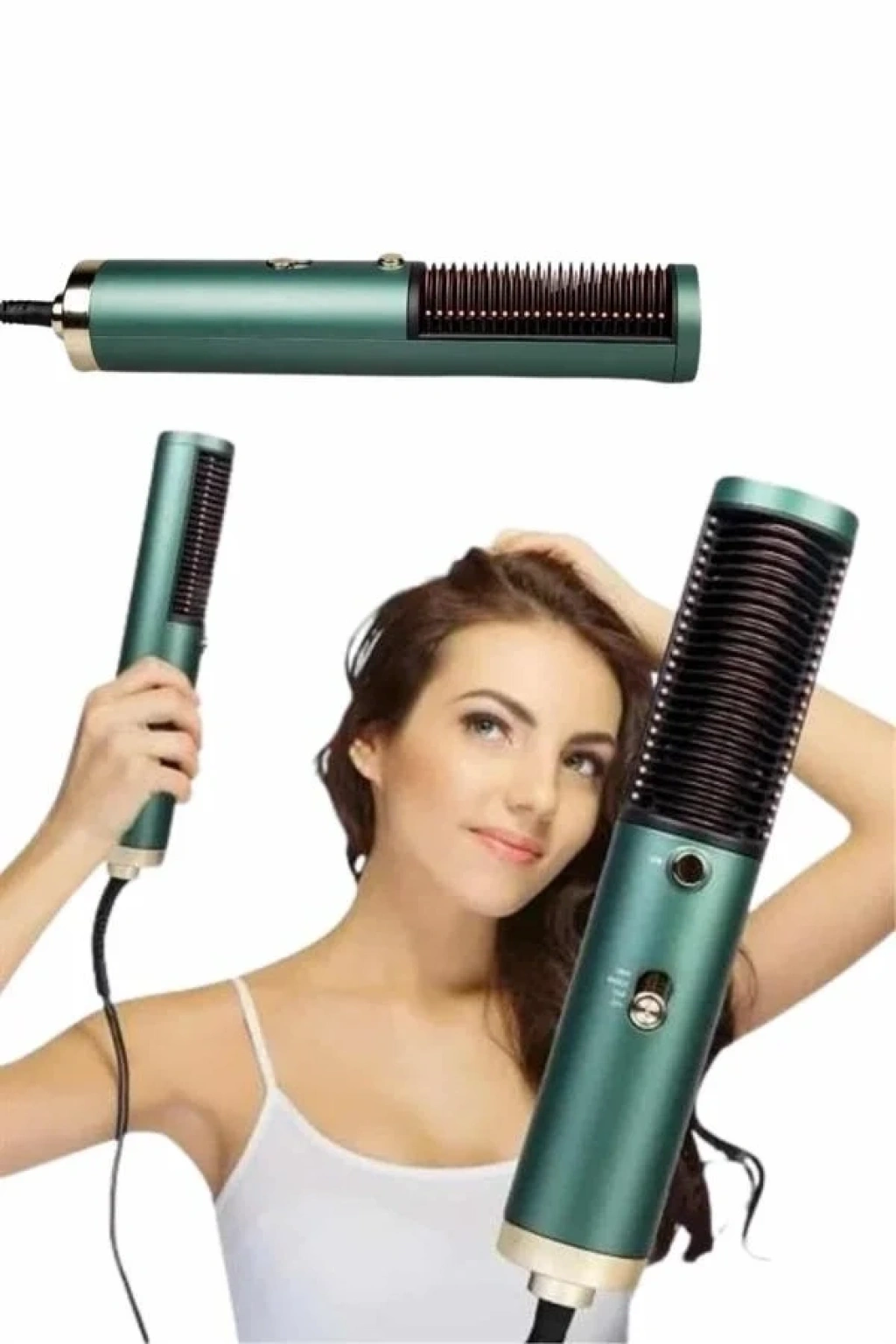 İyonik Sıcak Hava Saç Fırçası, saç şekillendirme deneyimini hem kolay hem de profesyonel hale getiren yenilikçi bir tasarımla karşınıza çıkıyor. Fon makinesi, düzleştirici ve saç tarağının işlevlerini bir arada sunan bu çok yönlü cihaz, her saç tipine uygun olarak geliştirilmiştir. Negatif iyon teknolojisi sayesinde saçın doğal nemini korurken, elektriklenme ve kabarma gibi problemleri minimize eder; böylece saçlarınız hem daha sağlıklı görünür hem de ipeksi bir pürüzsüzlük kazanır. Gelişmiş PTC hızlı ısınma teknolojisiyle donatılan bu fırça, yalnızca 30 saniyede maksimum sıcaklığa ulaşarak zaman tasarrufu sağlar.140 F ila 400 F arasında ayarlanabilen üç farklı sıcaklık seviyesi, ince telli saçlardan kalın ve kıvırcık saçlara kadar her türlü saç yapısına özel bakım sunar. Düşük, orta ve yüksek ısı ayarları ile saç tipinize en uygun sıcaklık düzeyini seçebilir, aşırı ısıya bağlı zararları önleyebilirsiniz.Kullanıcı dostu ergonomik yapısı ve 360 derece dönebilen güç kablosu ile tek elle rahat kullanım sağlar. Kablosu 2 metre uzunluğunda olup, hareket özgürlüğünü kısıtlamadan rahat bir şekillendirme süreci sunar. Ayrıca, yanıklara karşı geliştirilmiş güvenlik detayları ve kompakt tasarımı ile hem evde hem de seyahatlerde güvenle kullanılabilir.800W gücündeki motoru, sessiz ve etkili çalışarak saçlarınıza hem şekil verir hem de bakım yapar. 3 farklı hız ve ısı kombinasyonuyla esnek kullanım imkanı sunan bu cihaz, sadece stil değil, aynı zamanda saç sağlığına da özen gösterenler için ideal bir seçimdir. Şık, pratik ve güçlü bu saç düzleştirme fırçası ile her gün kuaförden çıkmış gibi hissetmeye hazır olun.
